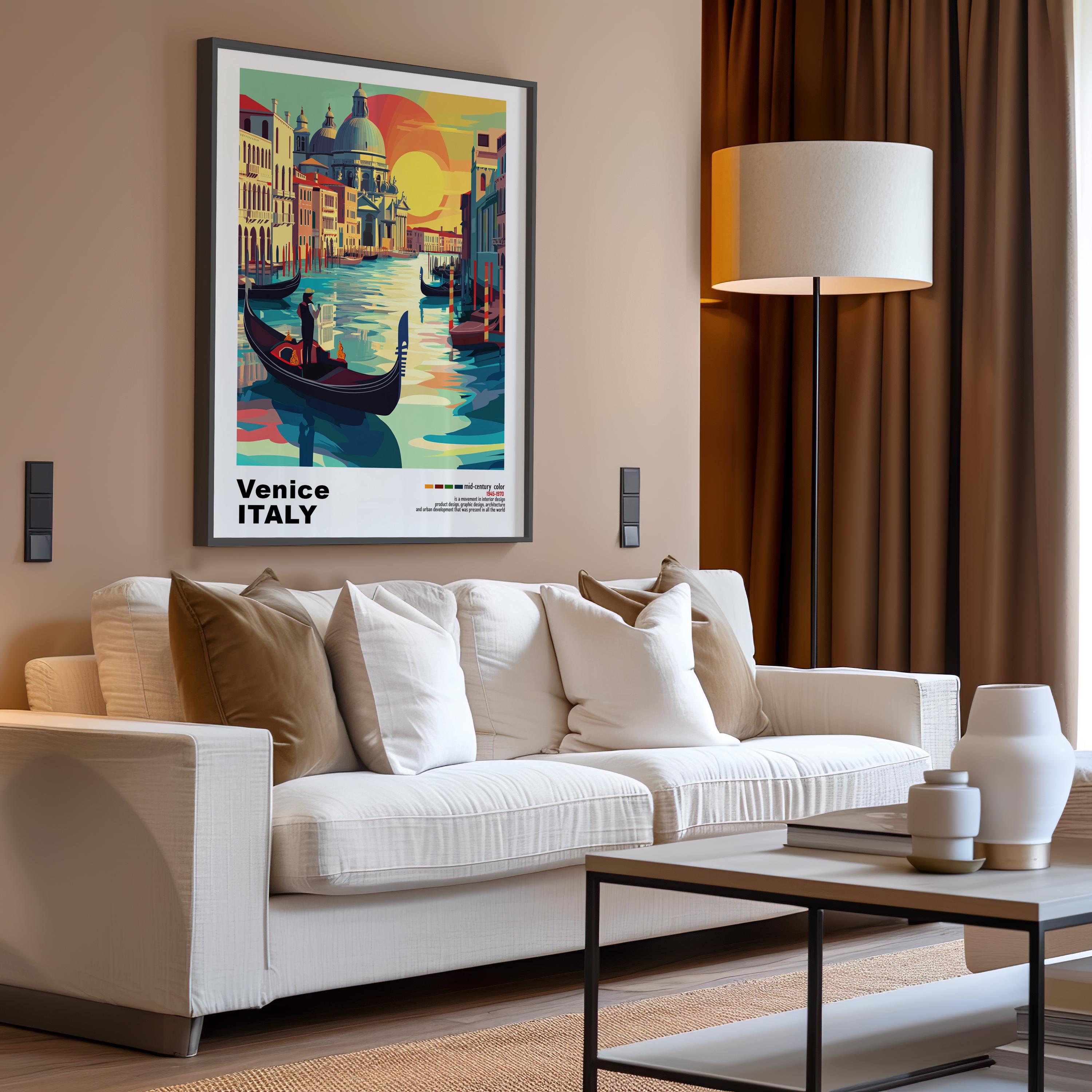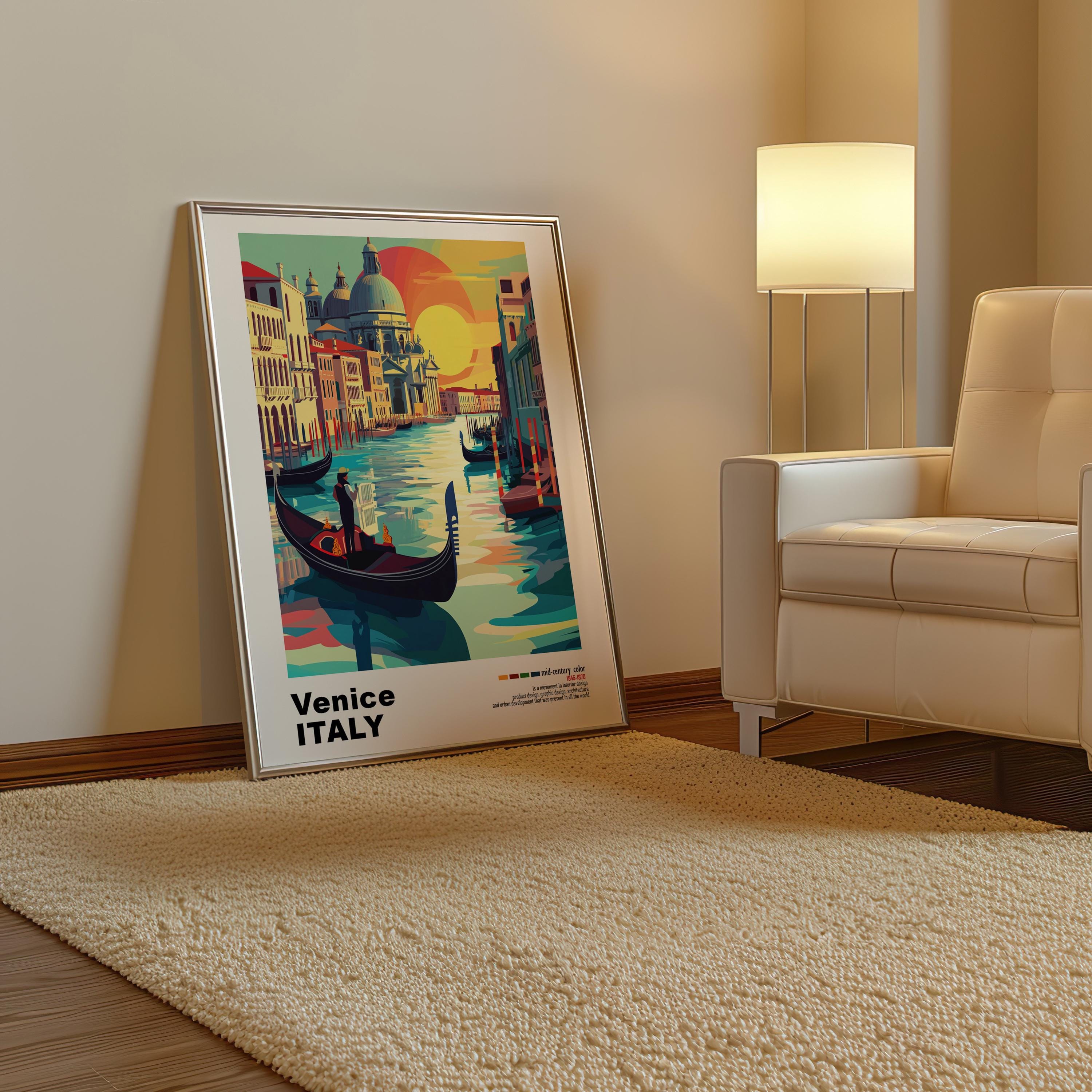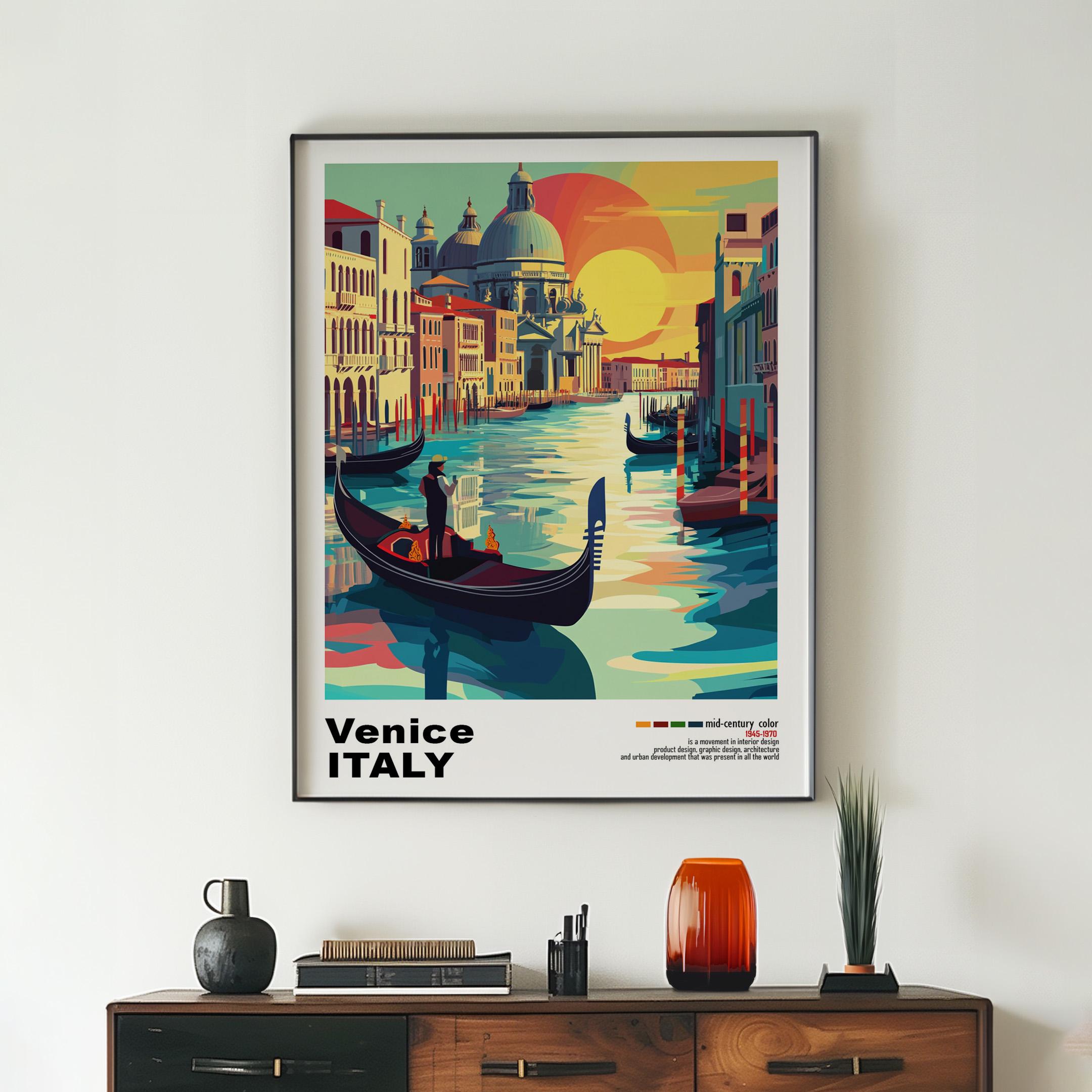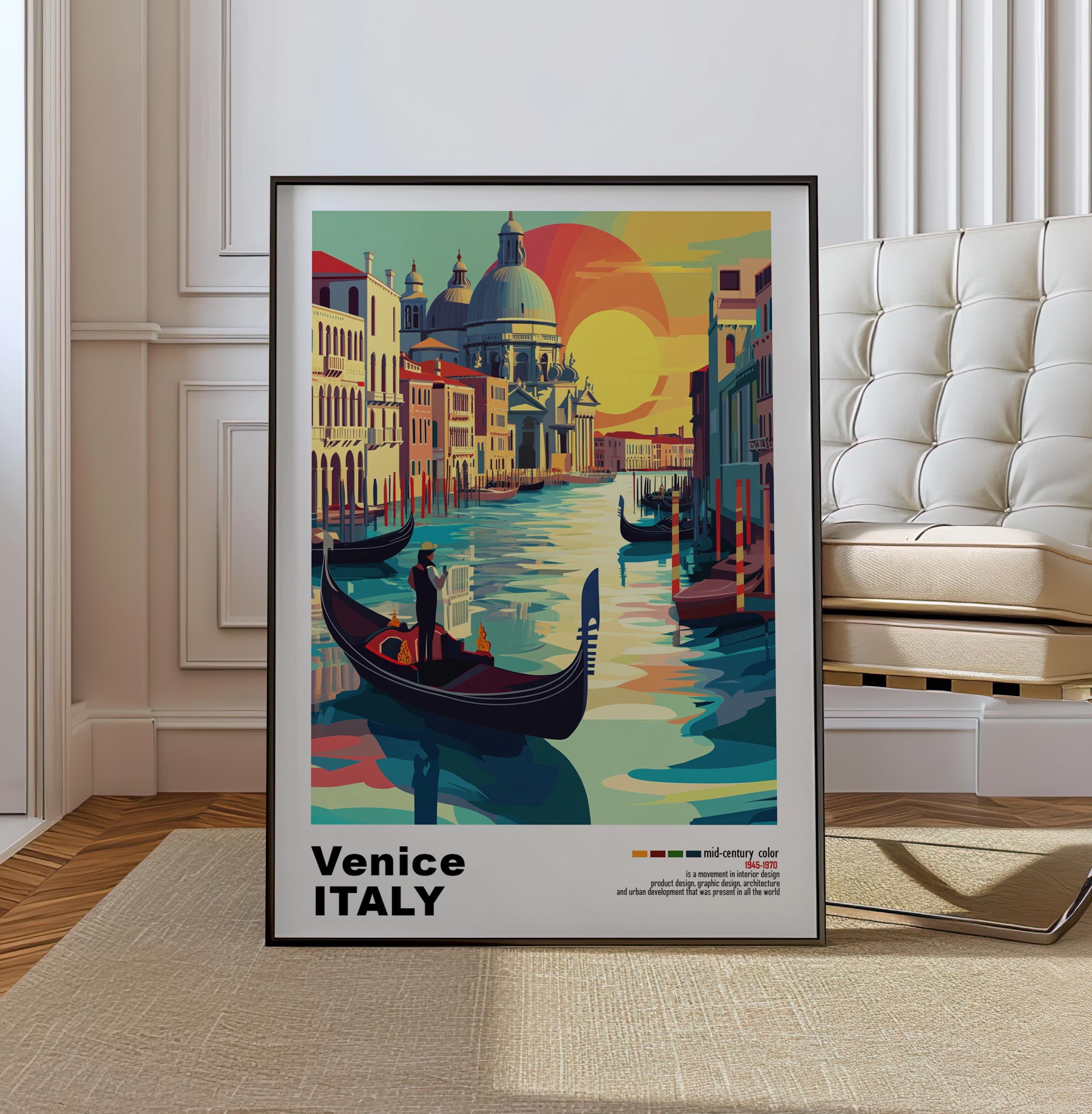 Venice, Italy - Mid-Century Modern Architecture Art Print – Retro Minimalist City Poster with Geometric Design - Bold Mid Century Print