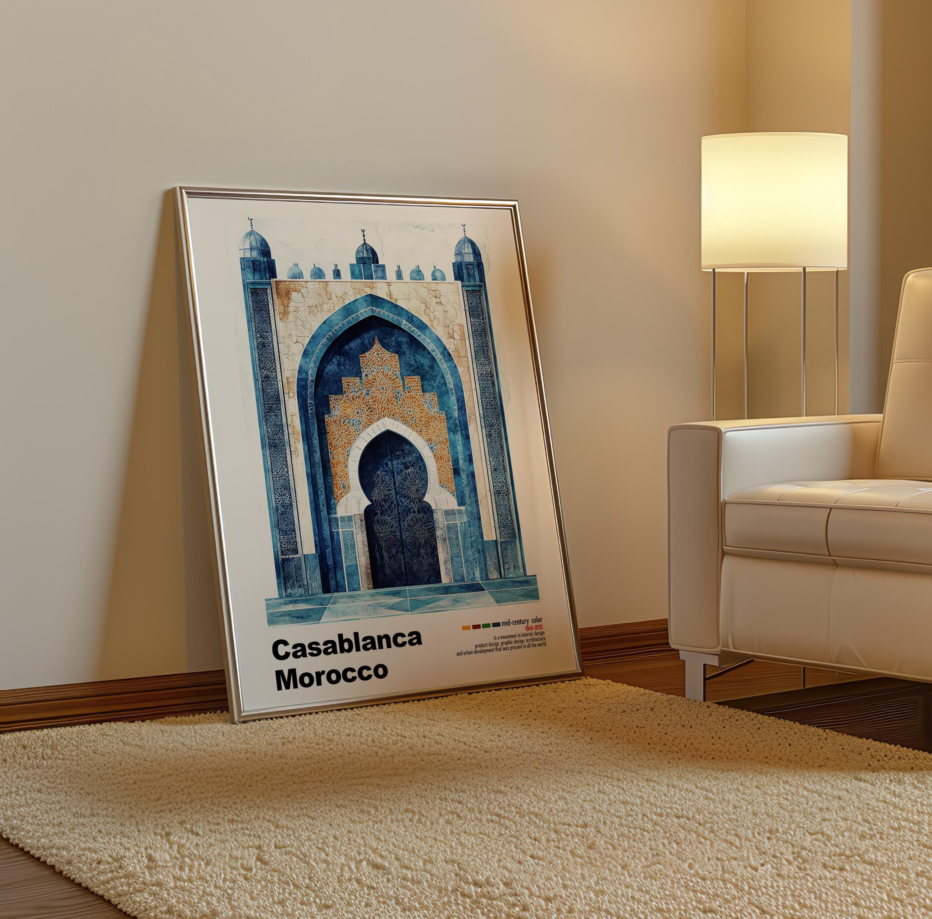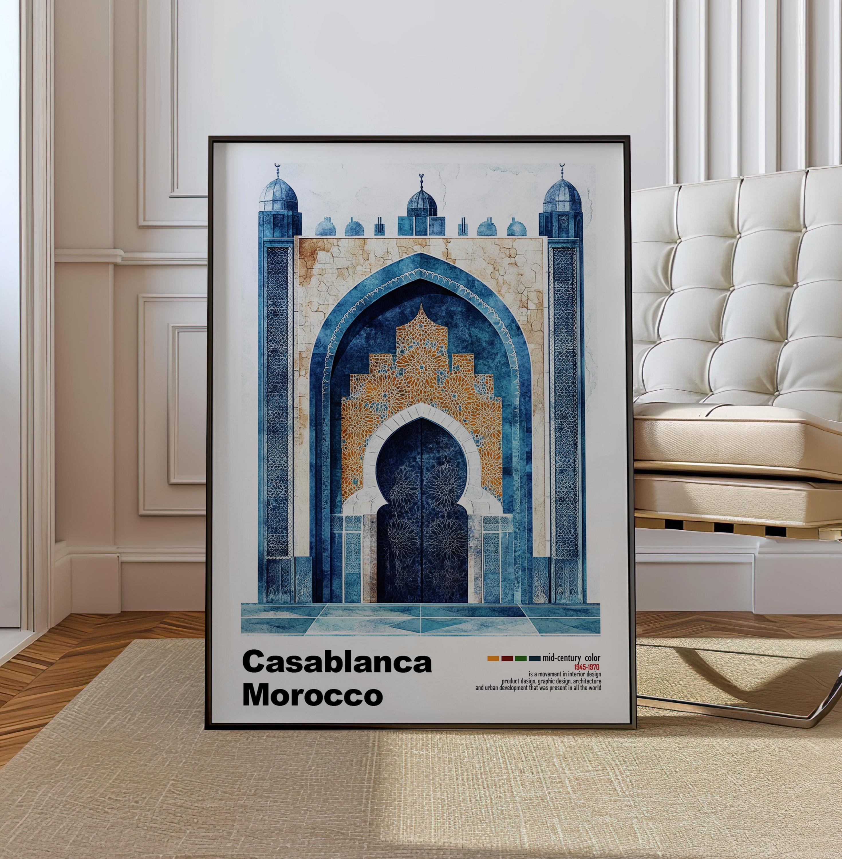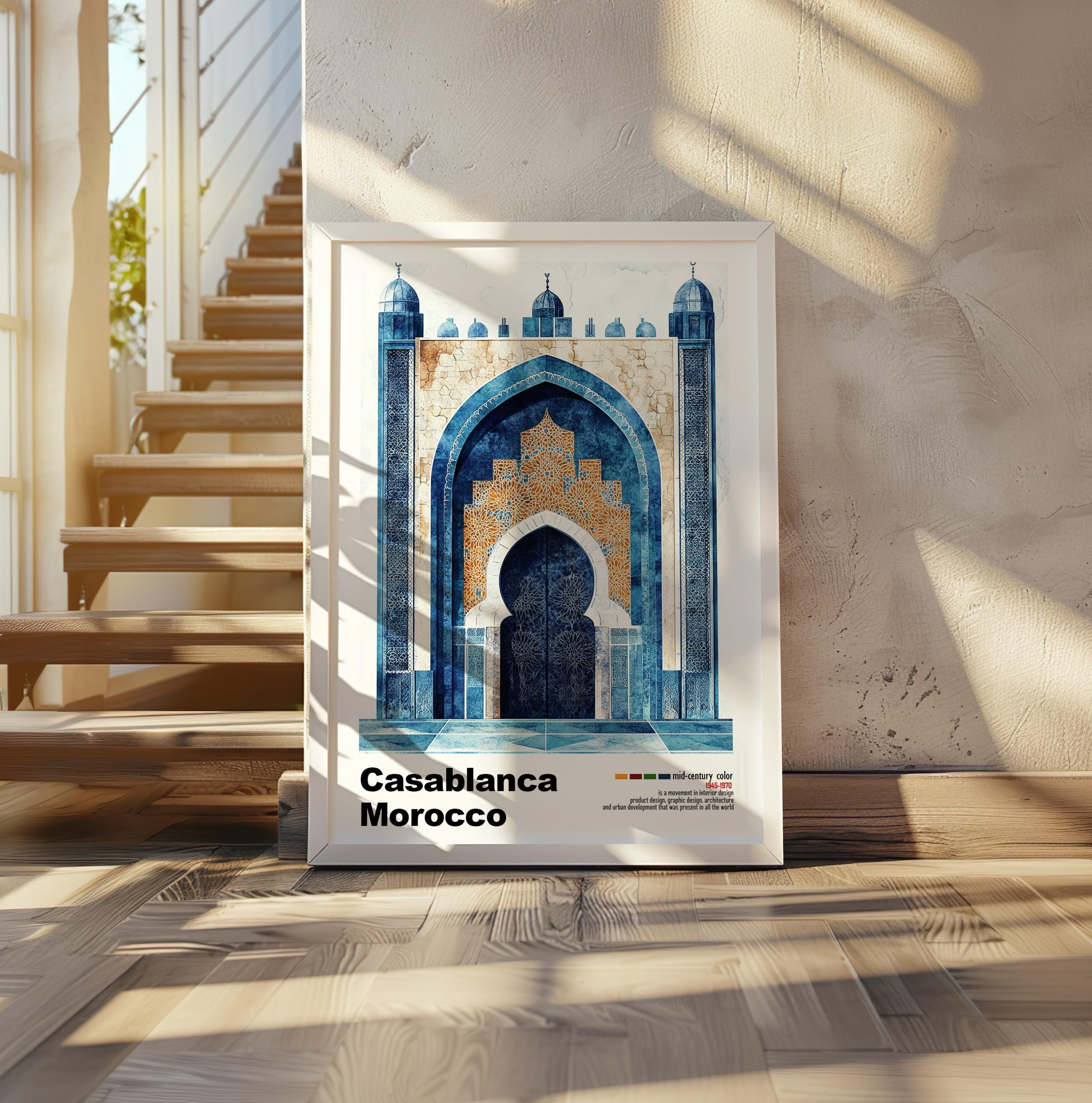 Casablanca, Morocco - Mid-Century Modern Architecture Art Print – Retro Minimalist City Poster with Geometric Design -Bold Mid Century Print