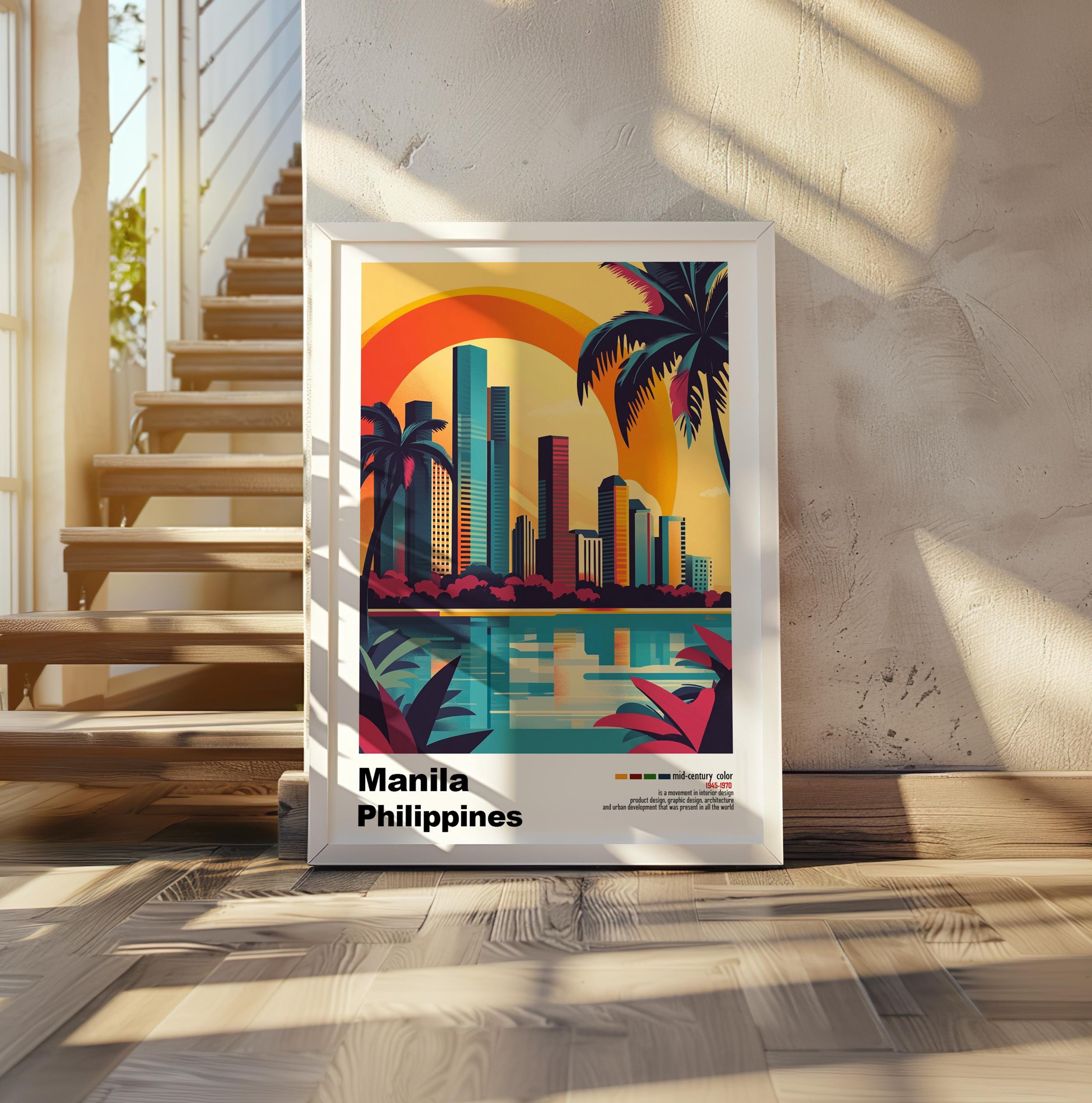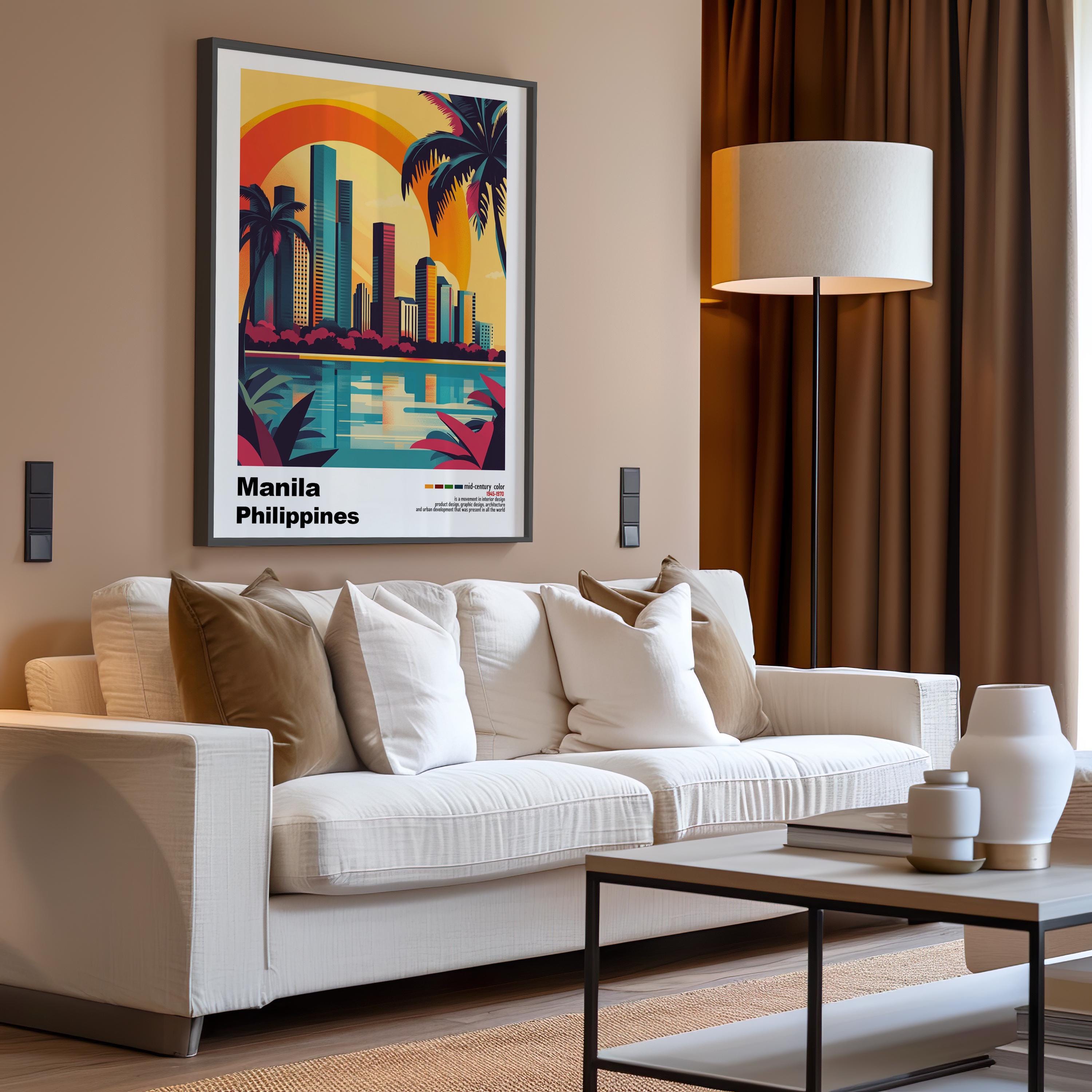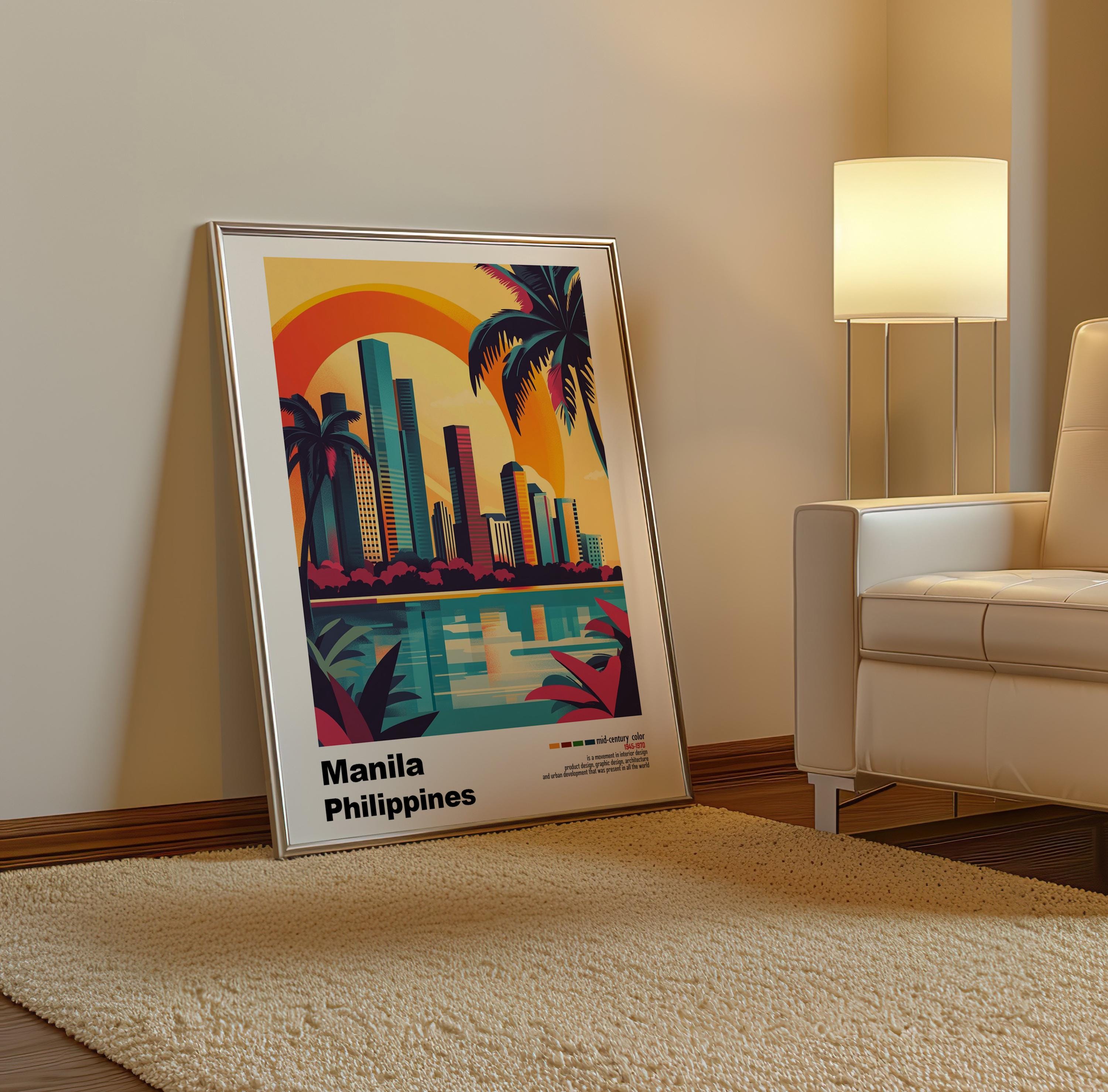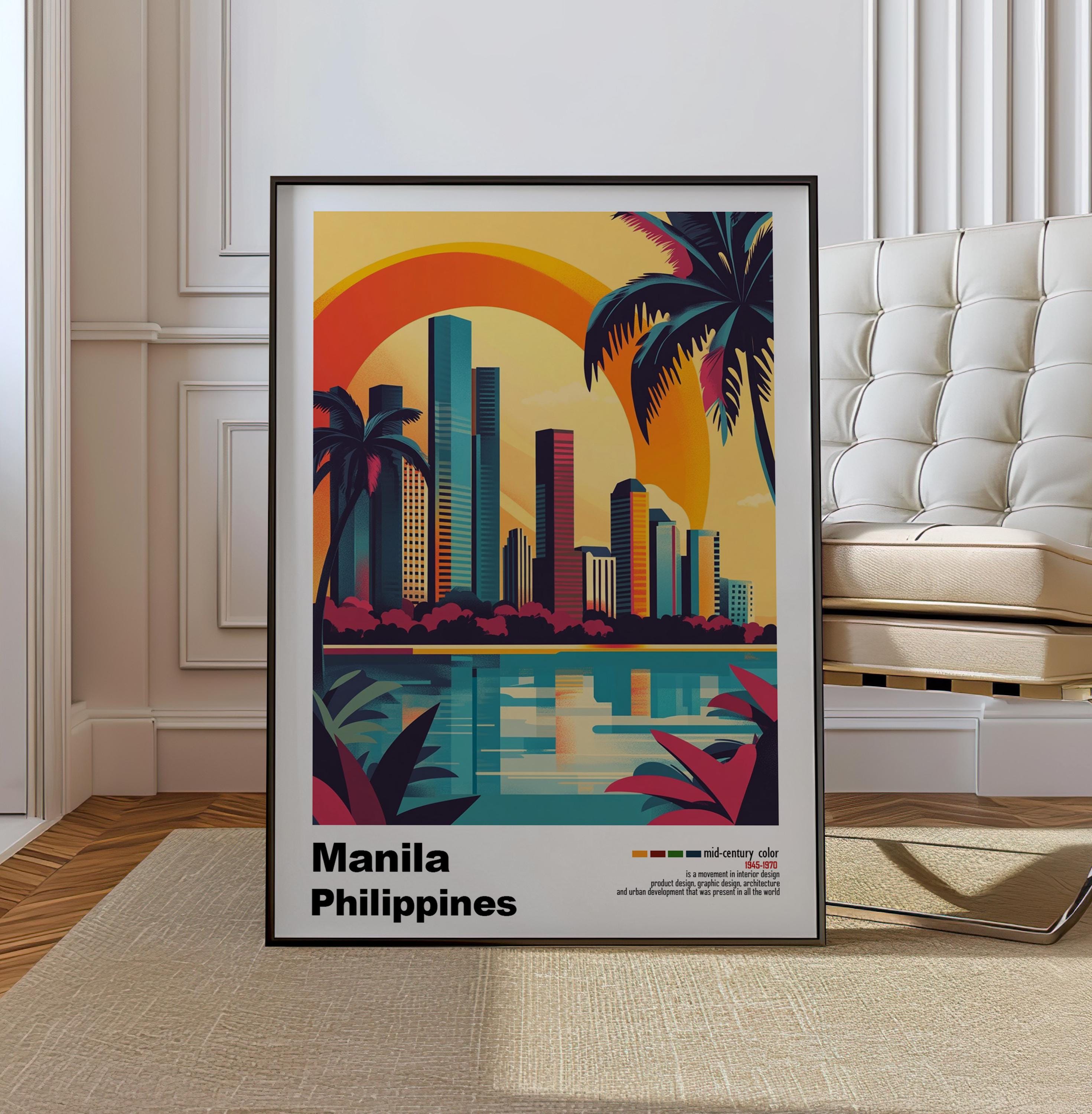 Manila, Philippines - Mid-Century Modern Architecture Art Print – Retro Minimalist City Poster with Geometric Design -Bold Mid Century Print