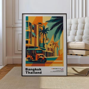 Bring timeless design into your space with this mid-century modern art print. Featuring bold colors, minimalist geometric shapes, and inspired by iconic architecture, this piece captures the retro charm of your favourite city.