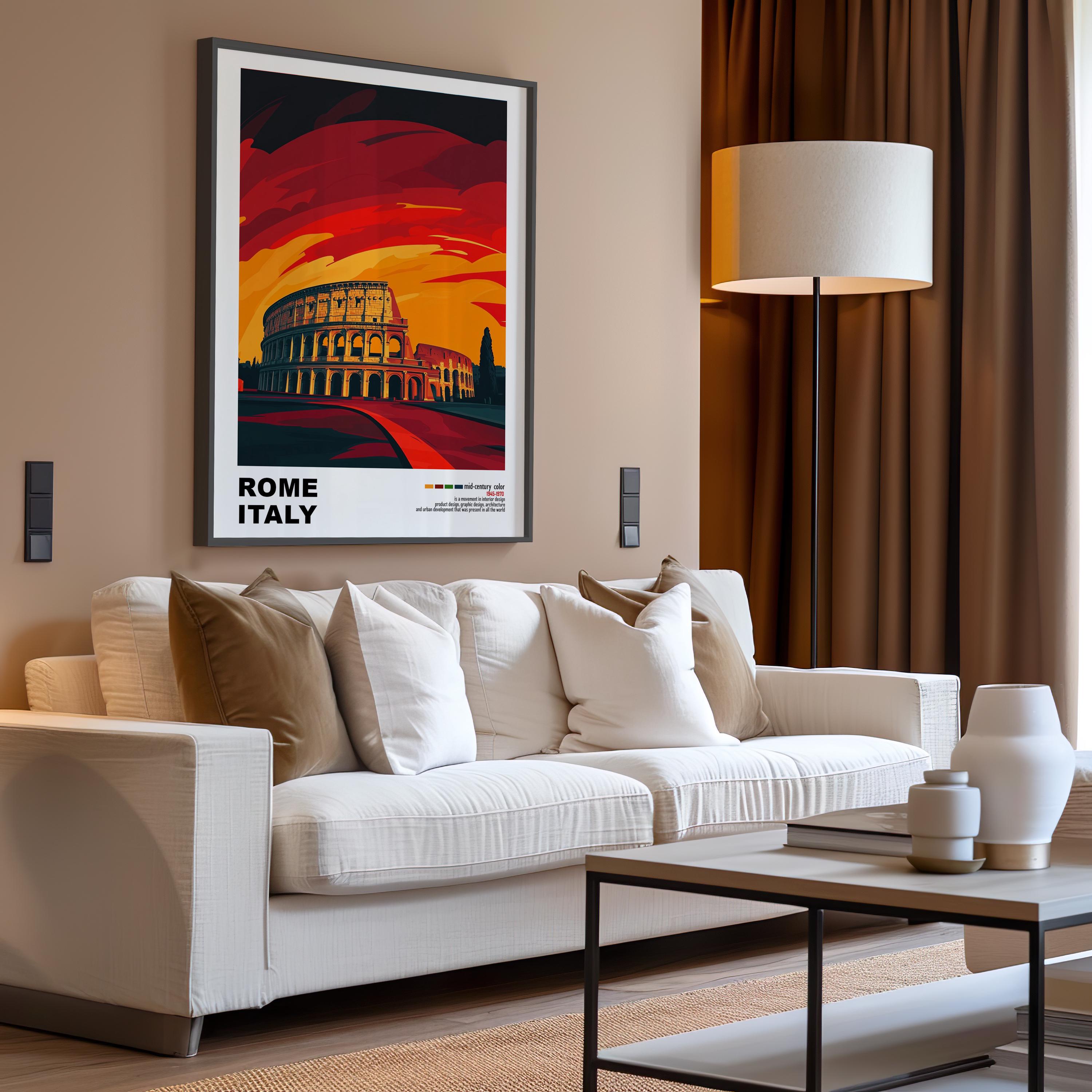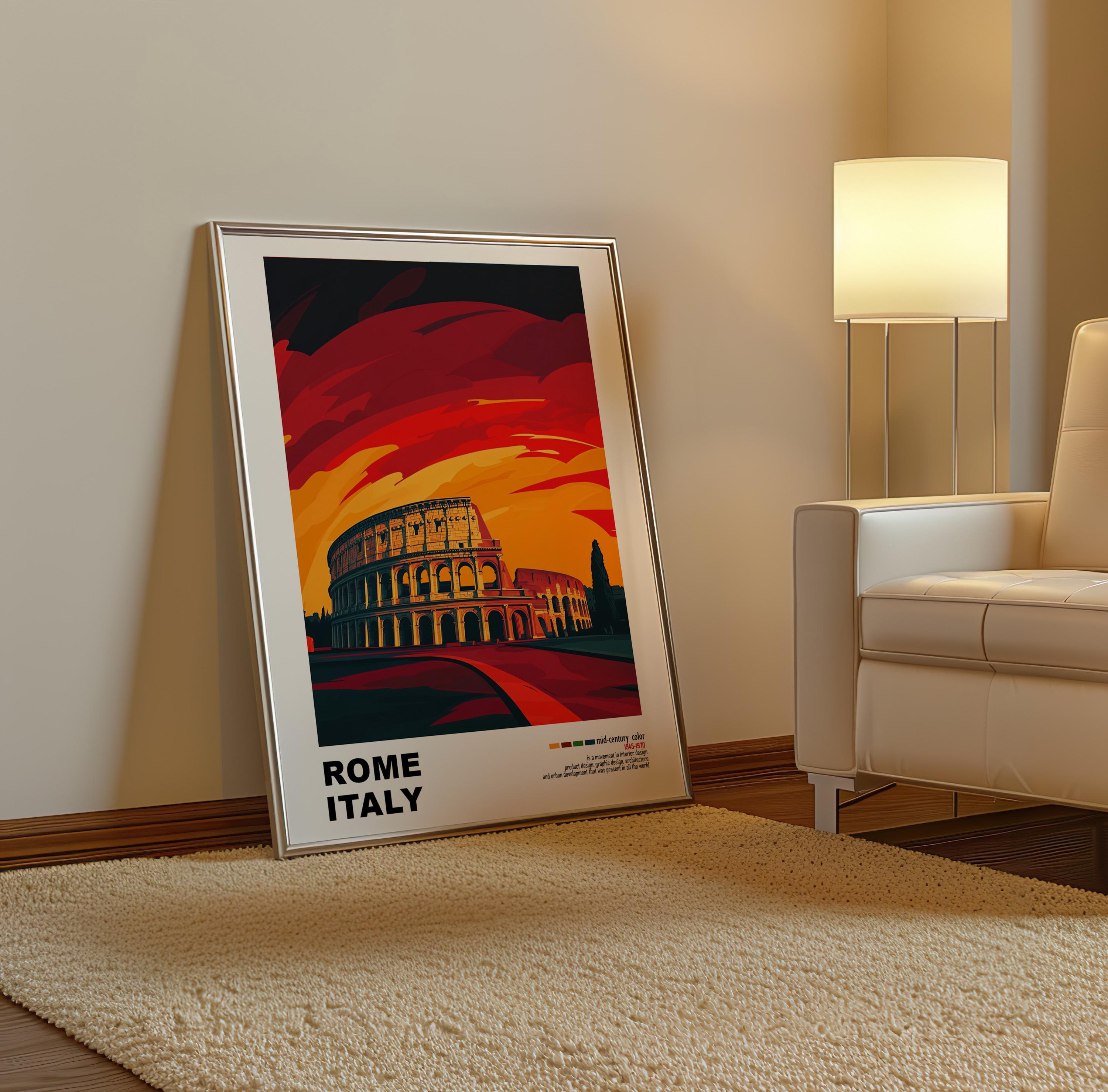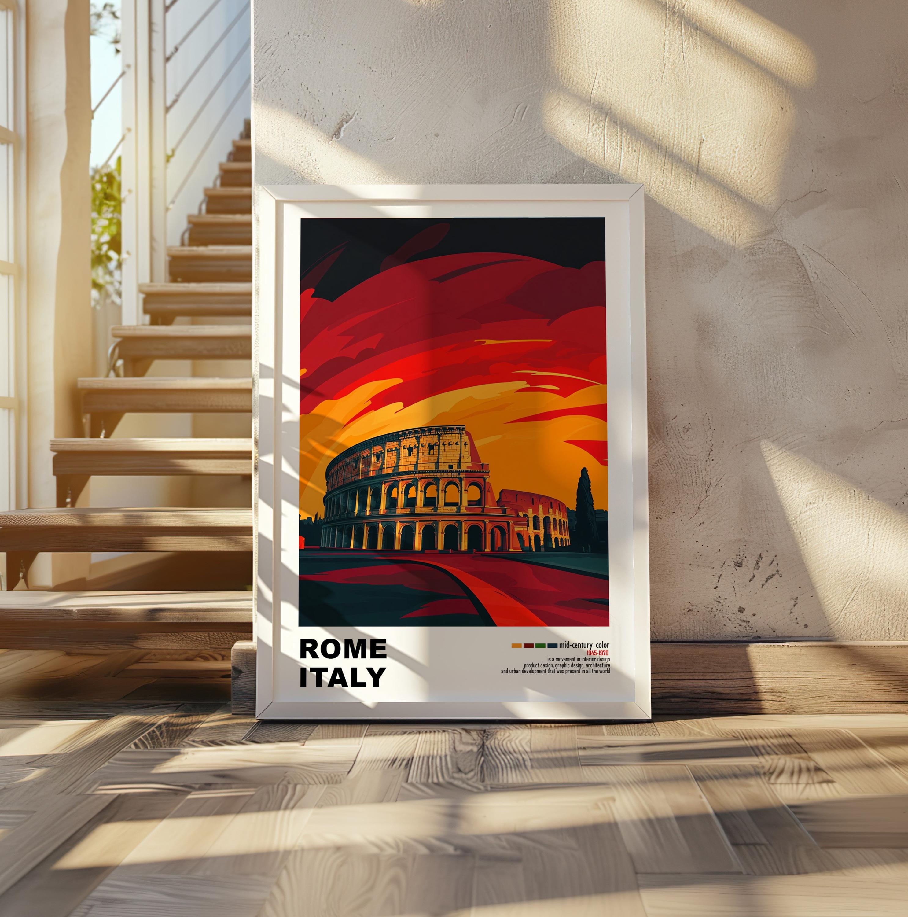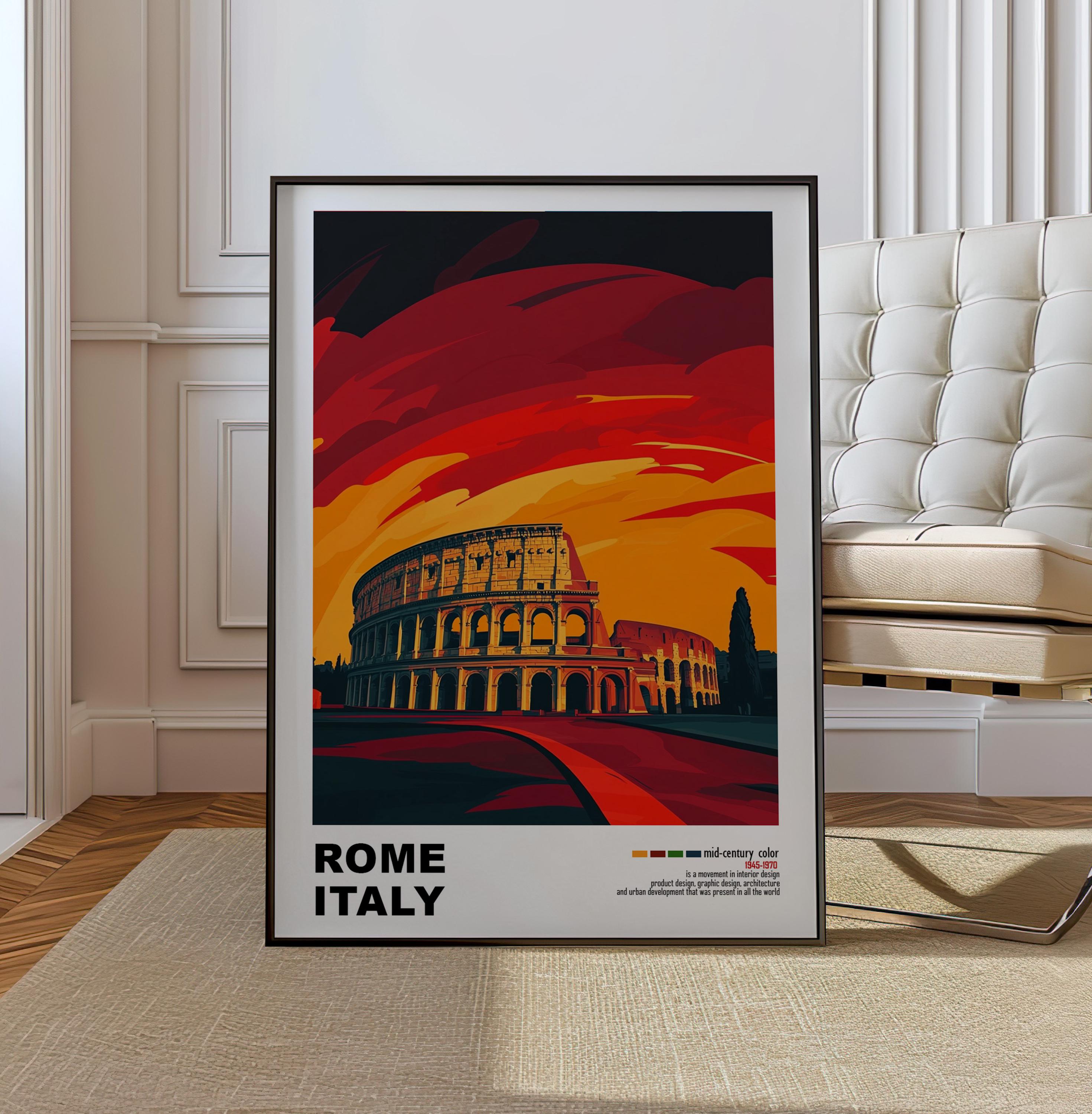 Rome, Italy - Mid-Century Modern Architecture Art Print – Retro Minimalist City Poster with Geometric Design - Bold Mid Century Colosseum
