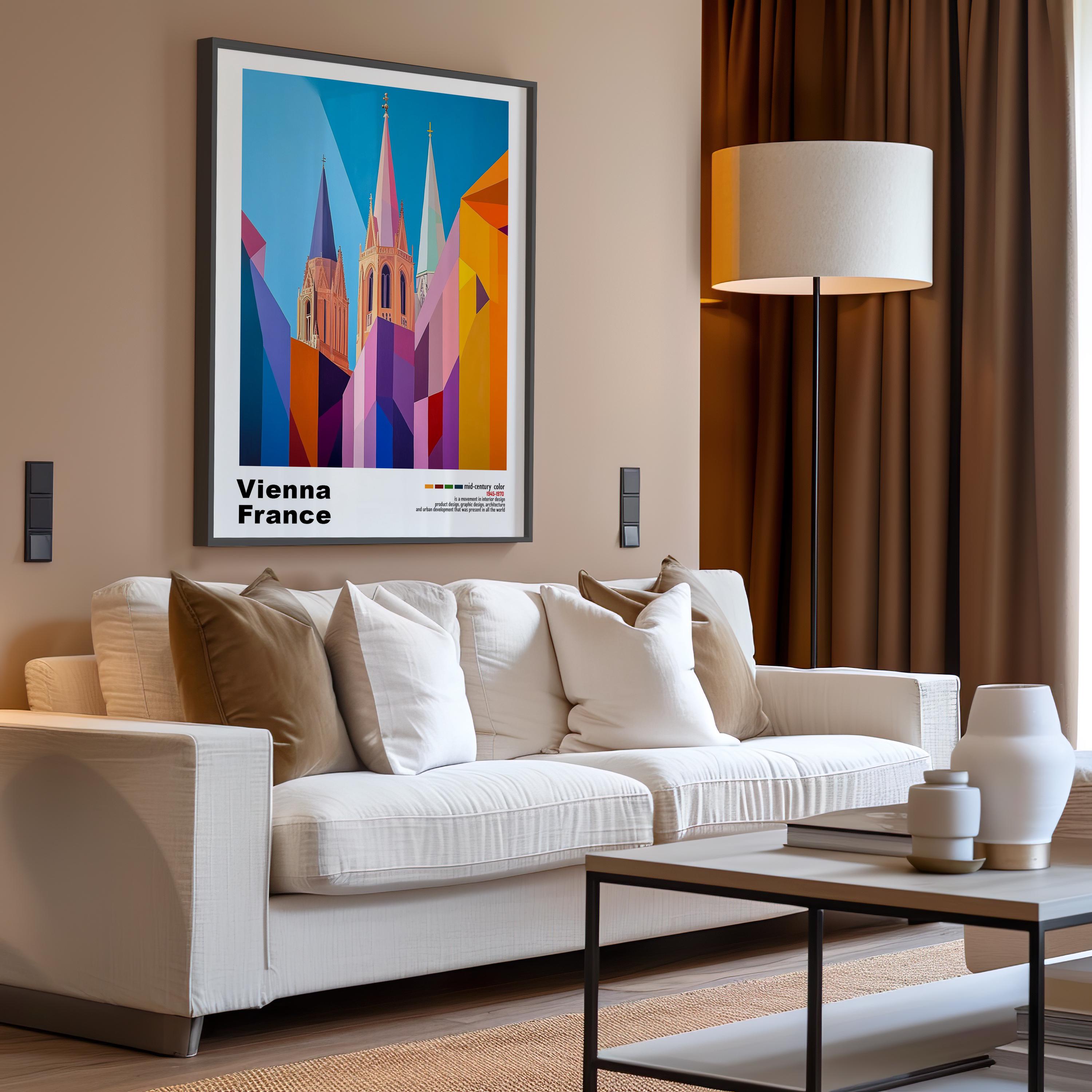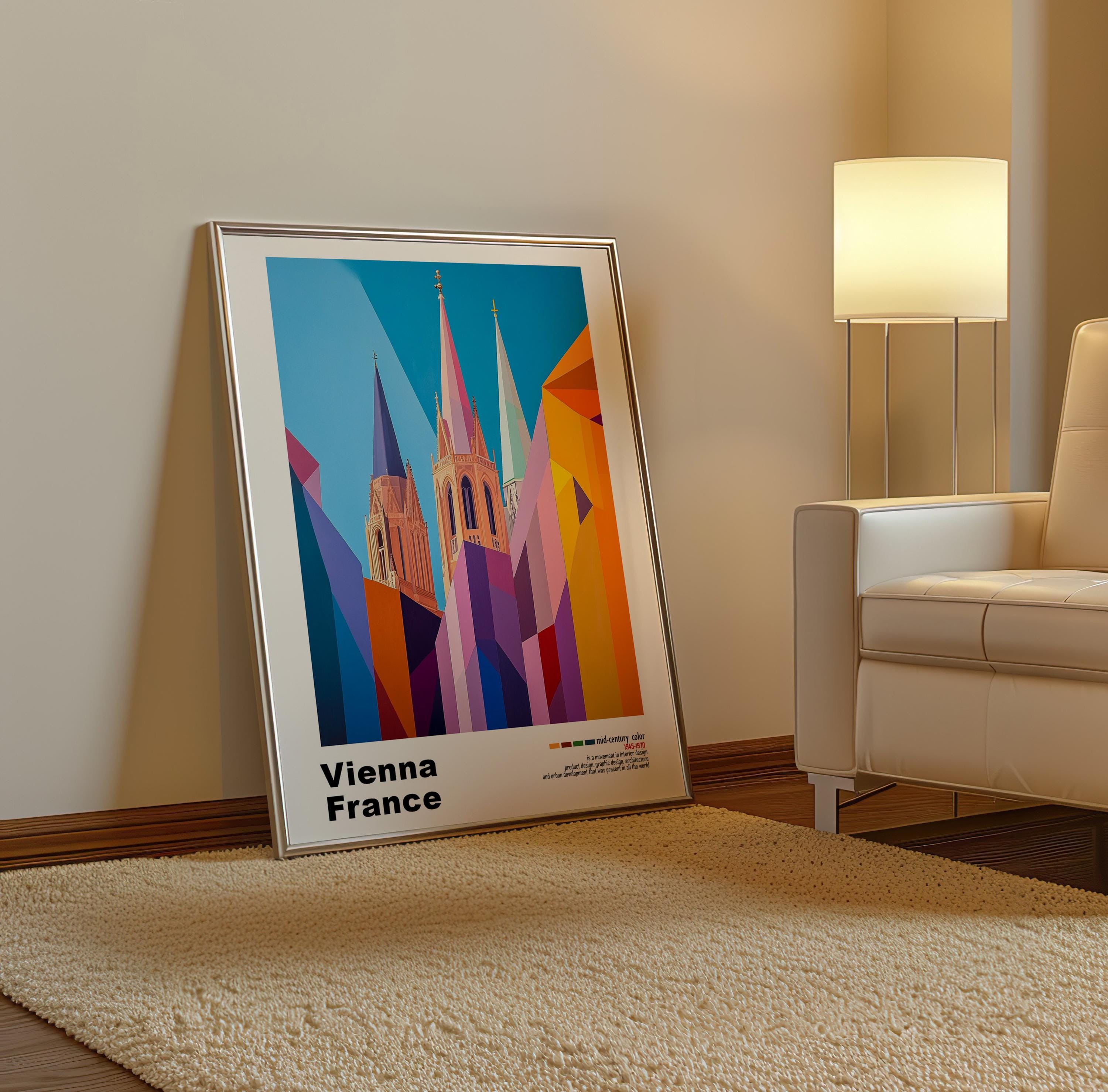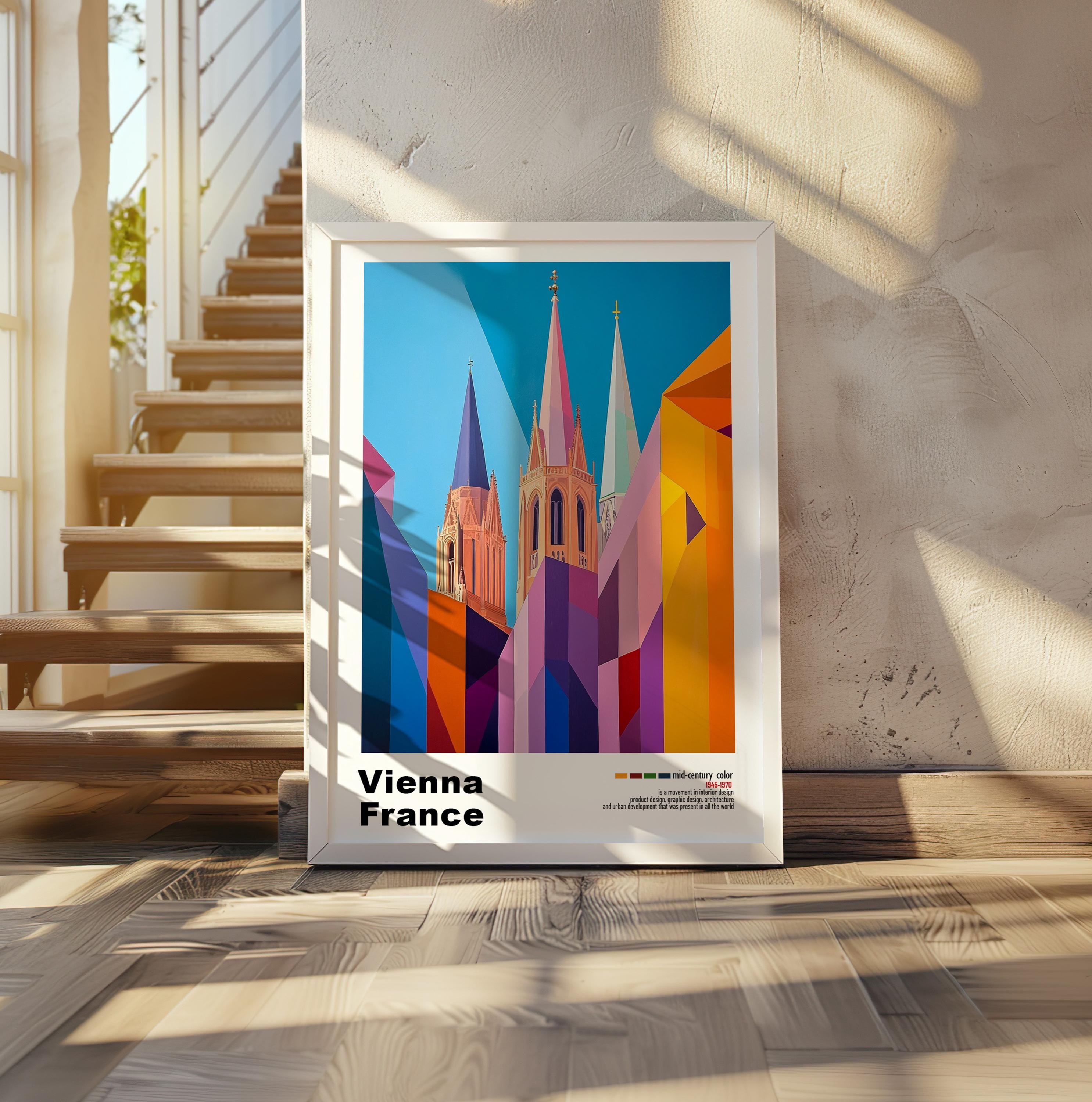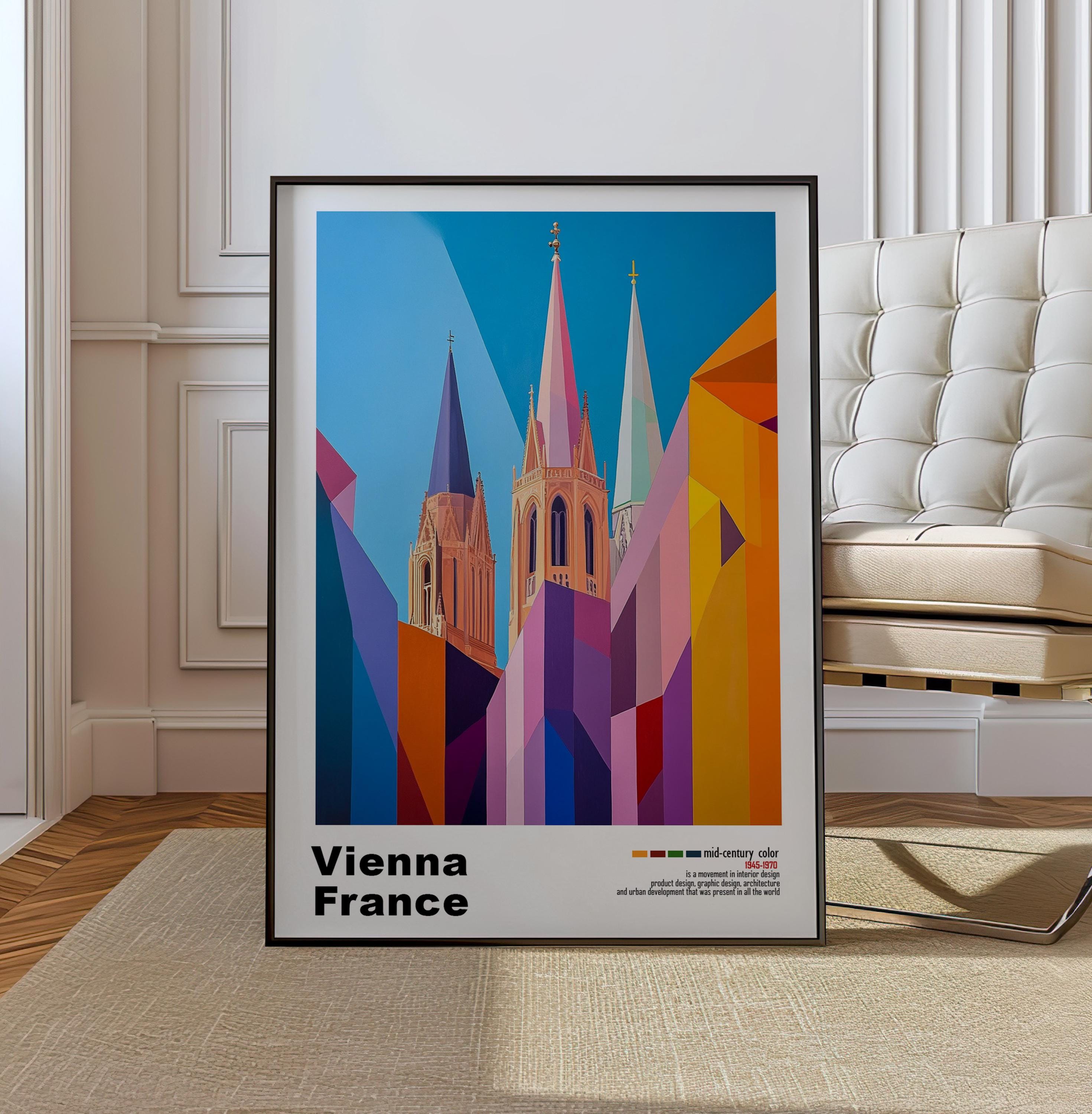 Vienna, France - Mid-Century Modern Architecture Art Print –Retro Minimalist City Poster with Geometric Design - Bold Mid Century Poster