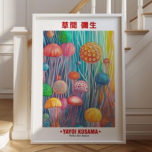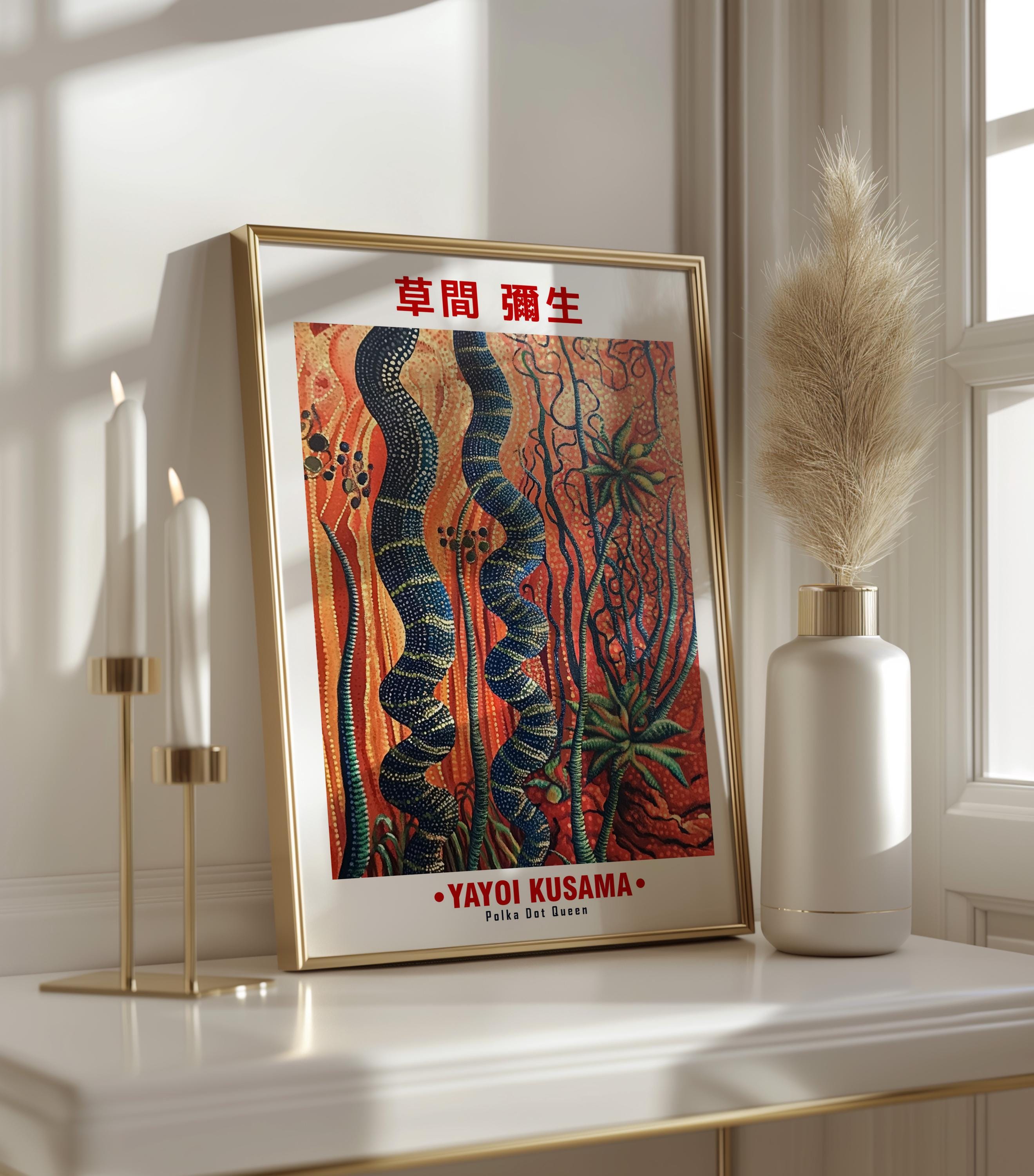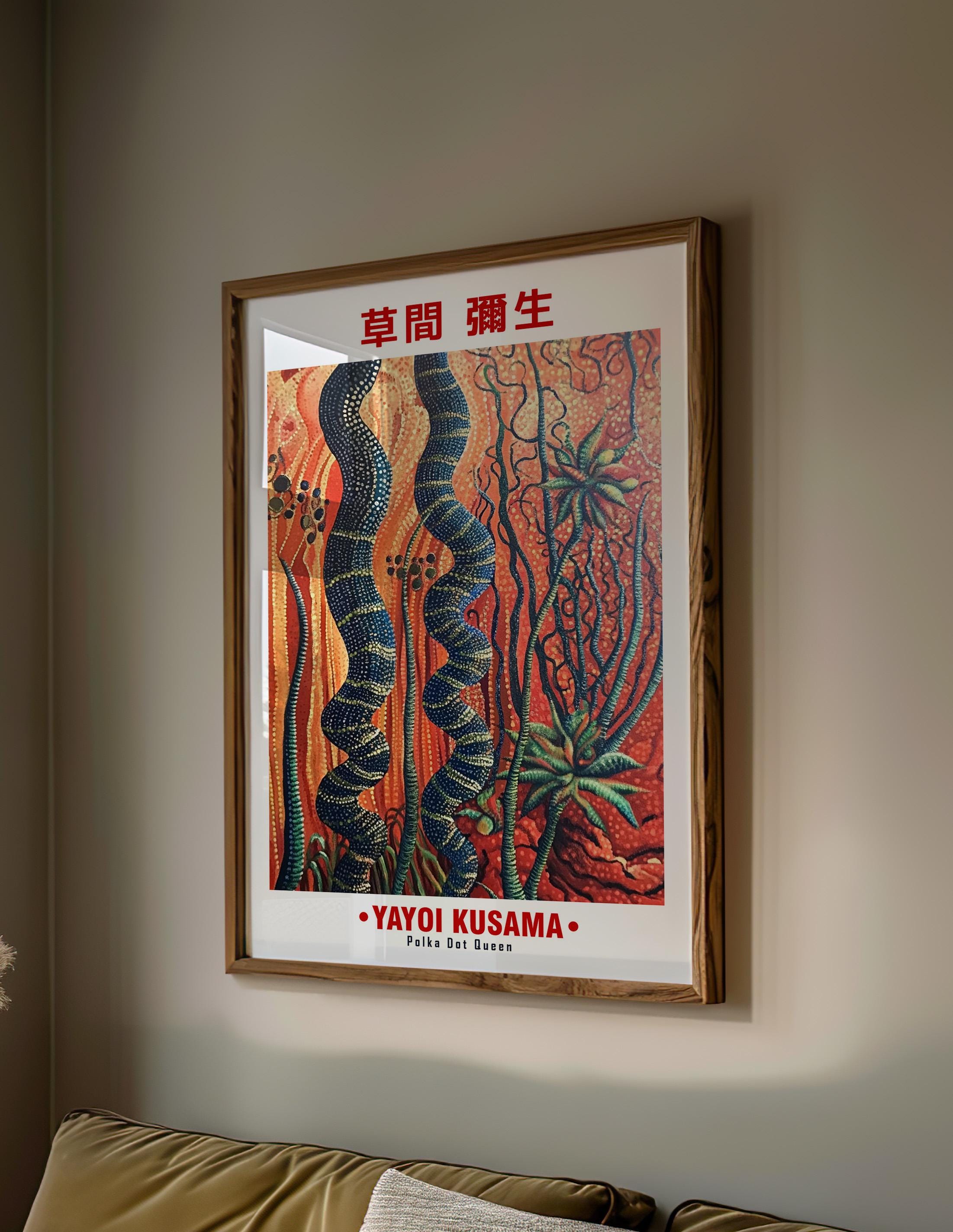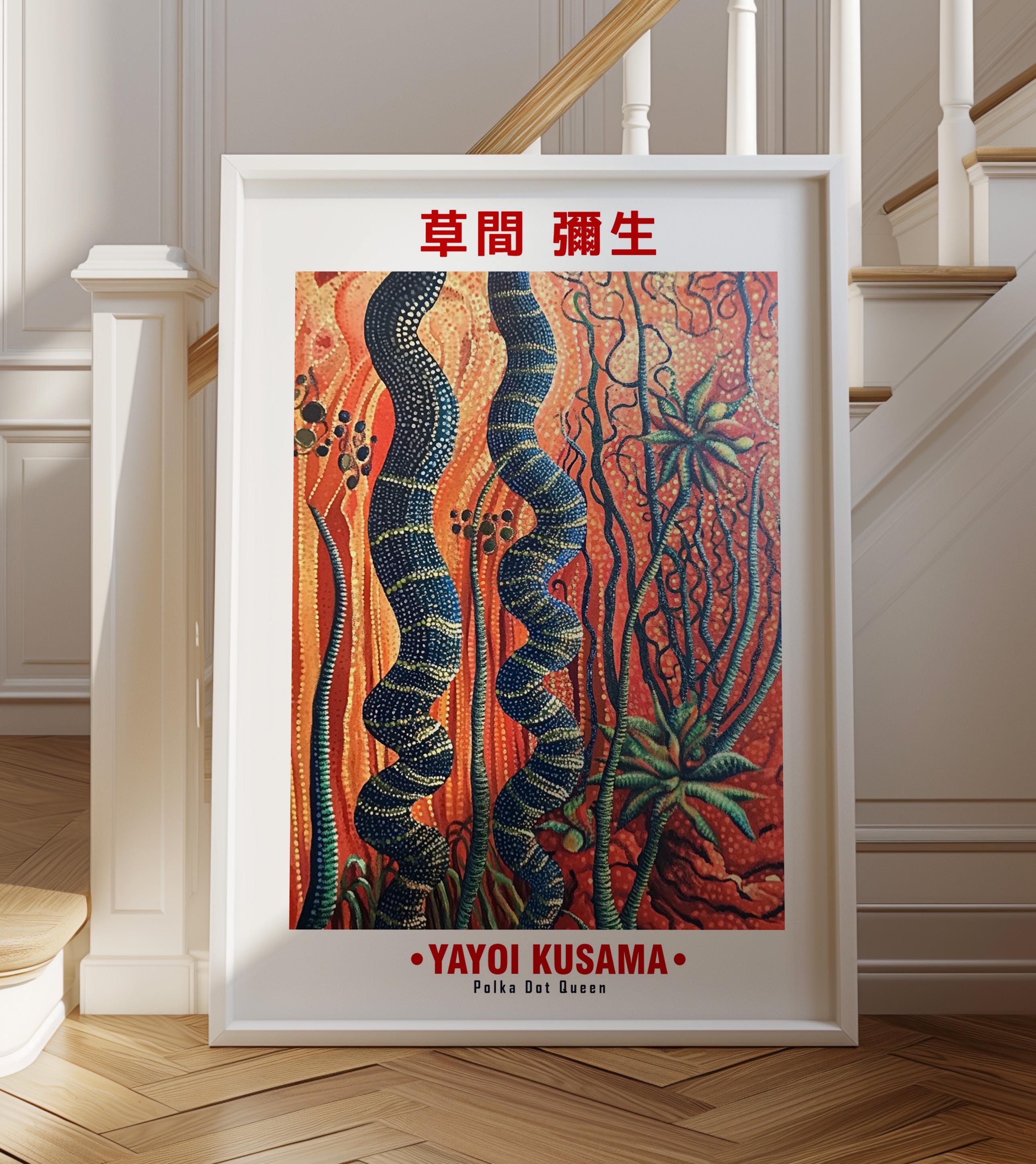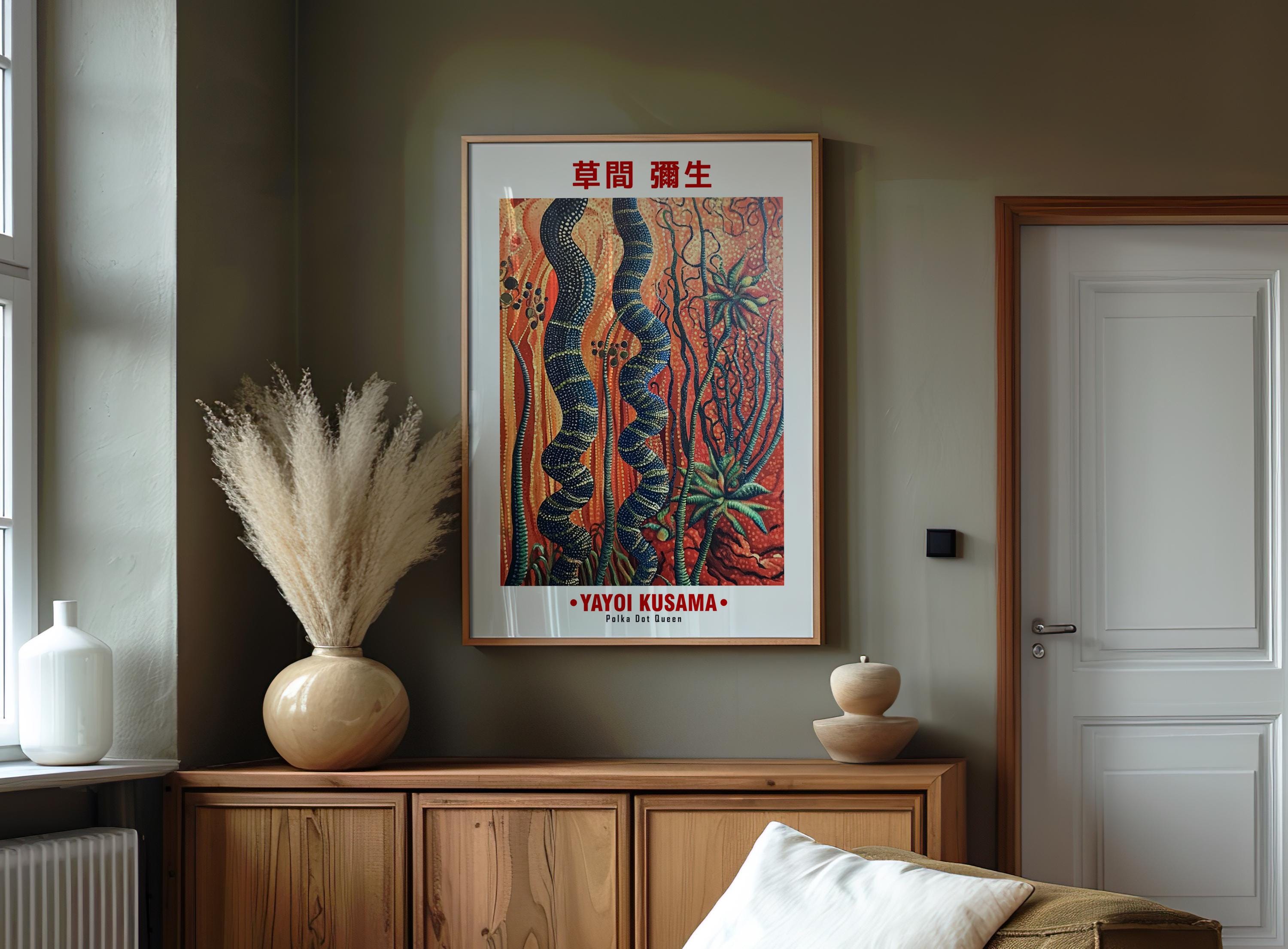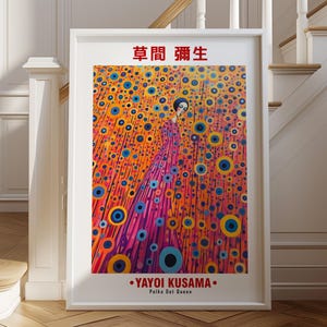 Yayoi Kusama Inspired Polka Dot Art Print - Modern Abstract Poster - Colorful Japanese Pop Home Wall Decor - framed