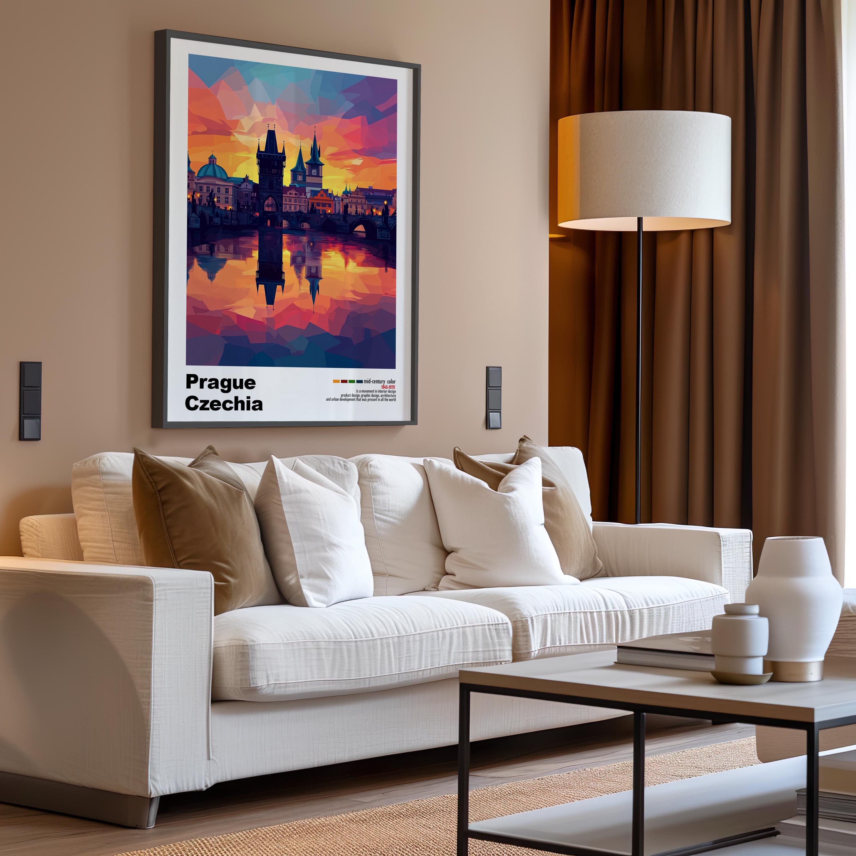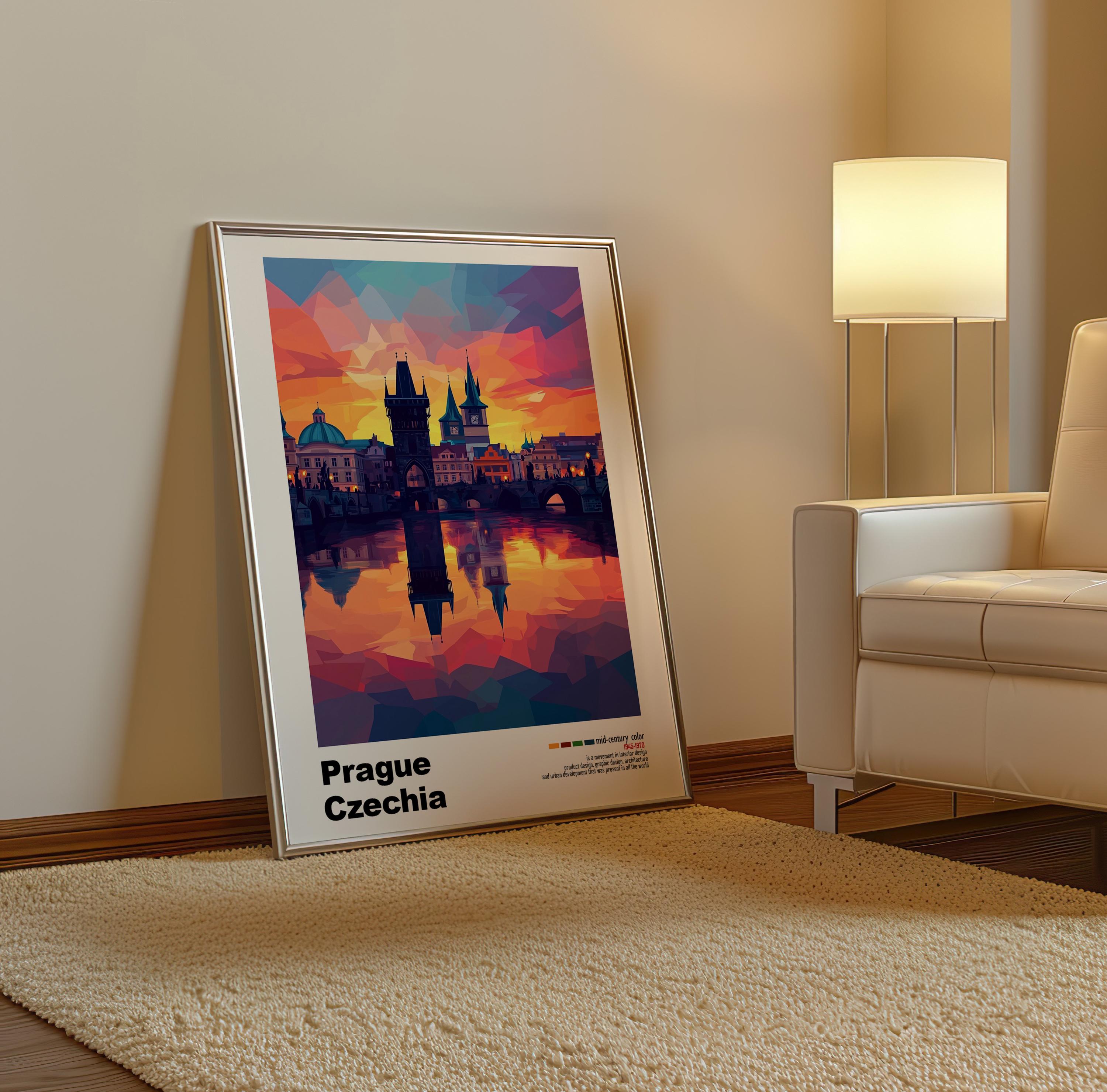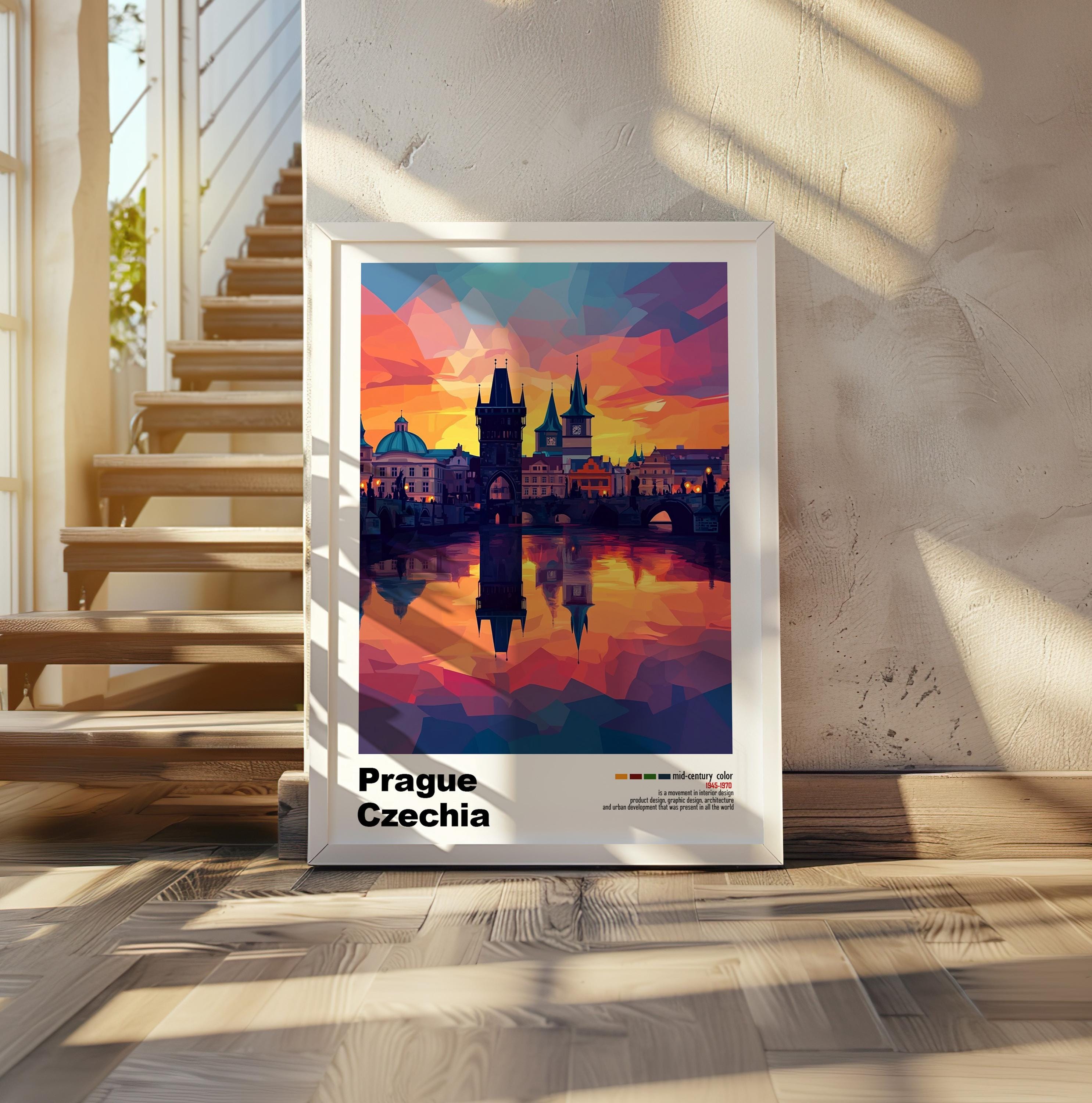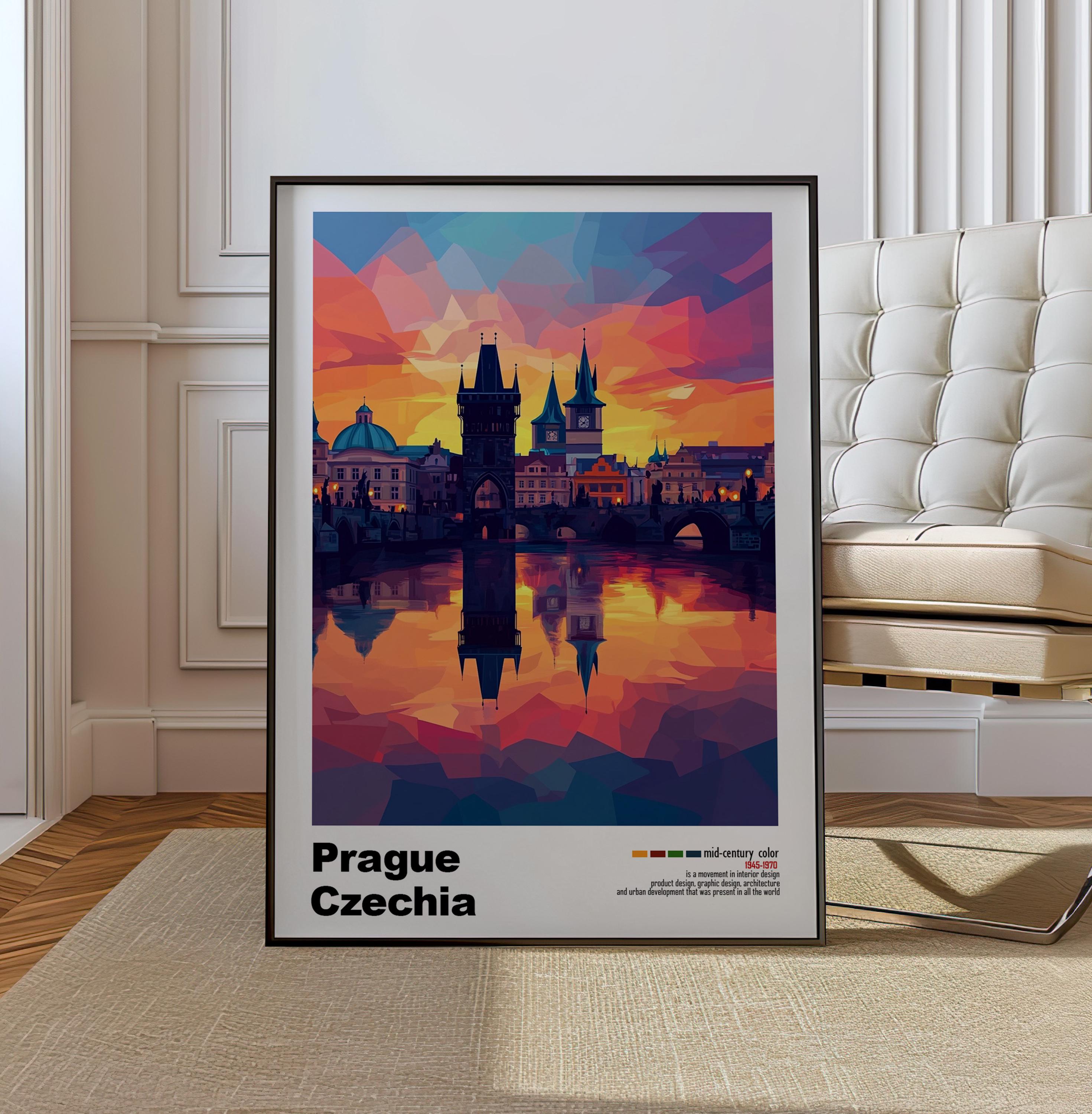 Prague, Czech Republic - Mid-Century Modern Architecture Art Print – Retro Minimalist City Poster with Geometric Design - Bold Mid Century