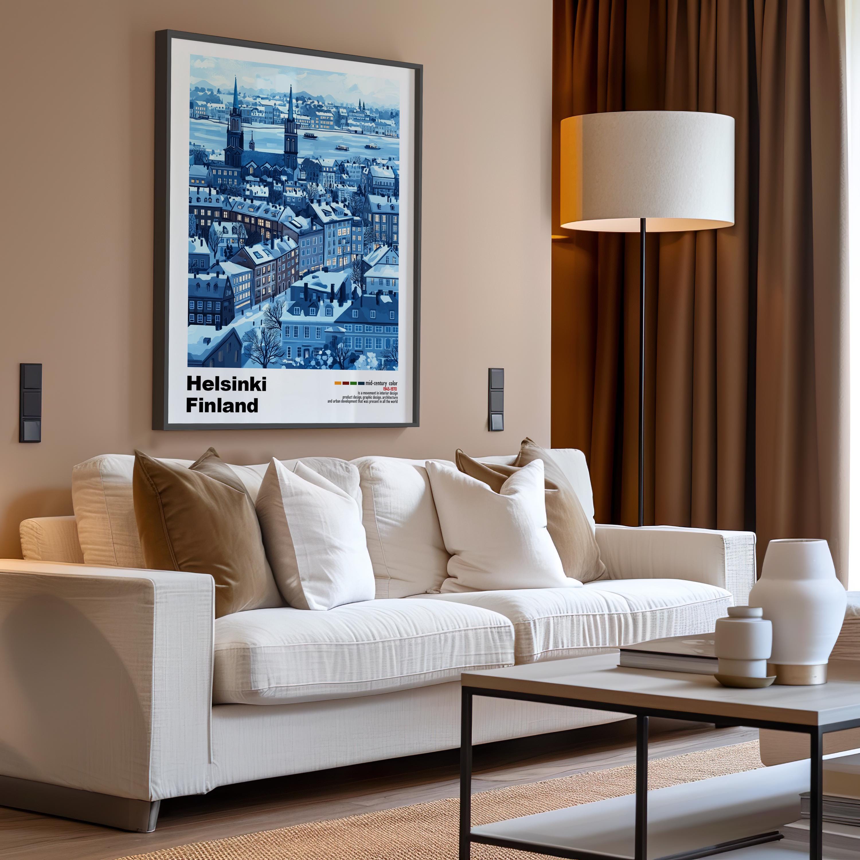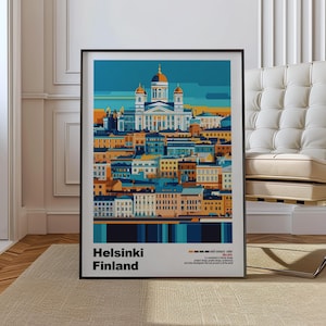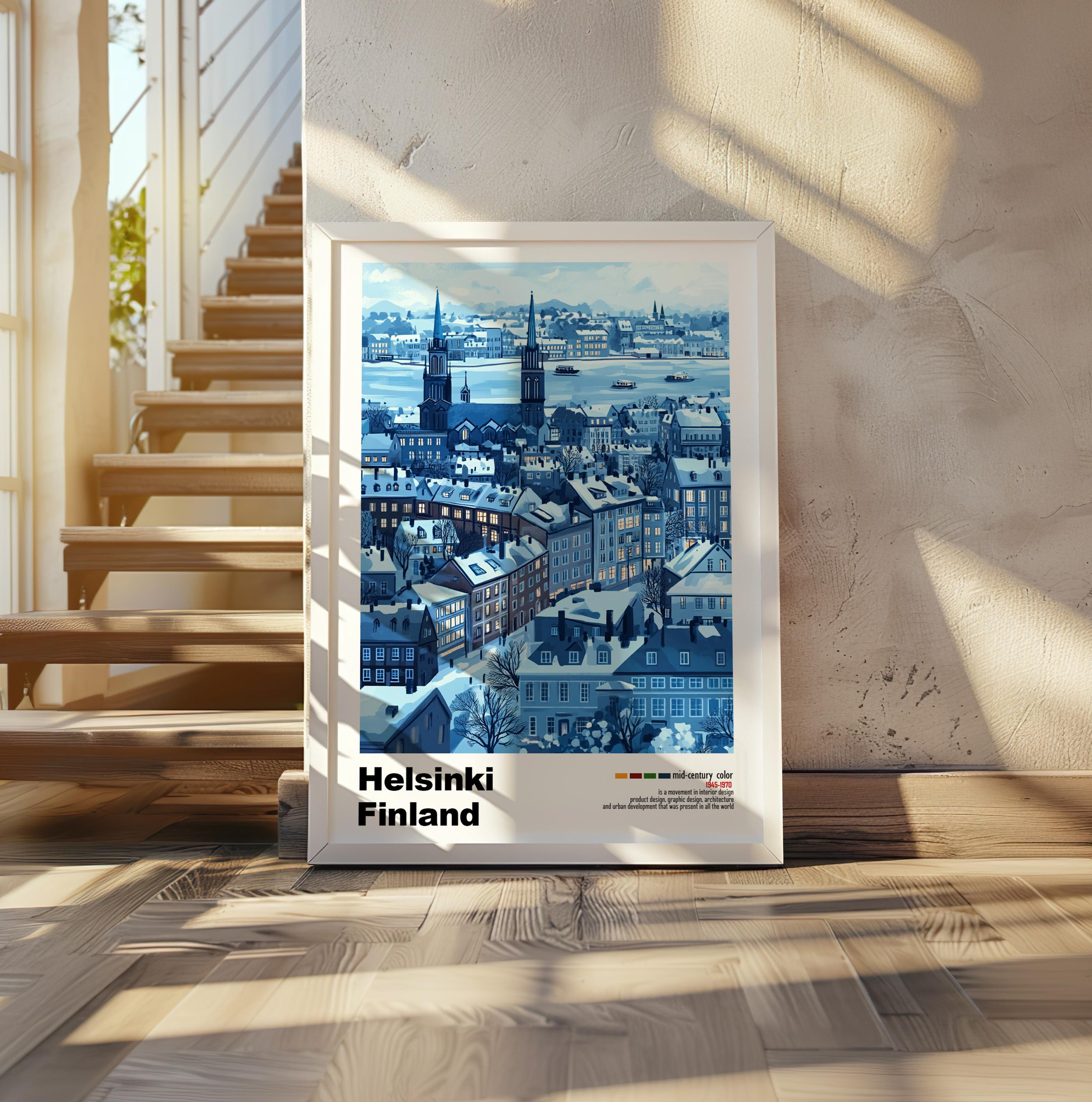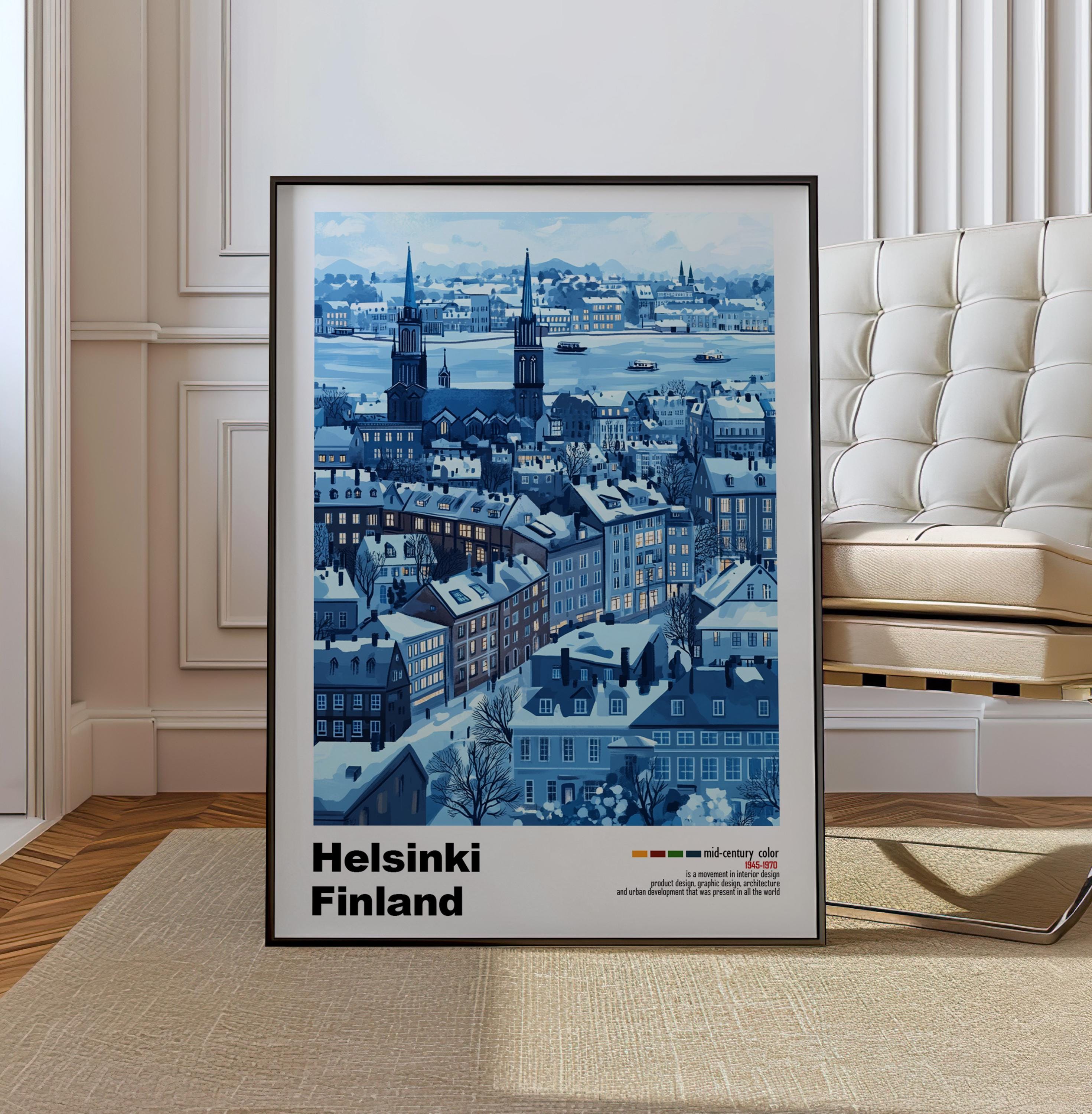 Helsinki, Finland - Mid-Century Modern Architecture Art Print – Retro Minimalist City Poster with Geometric Design - Bold Mid Century Poster