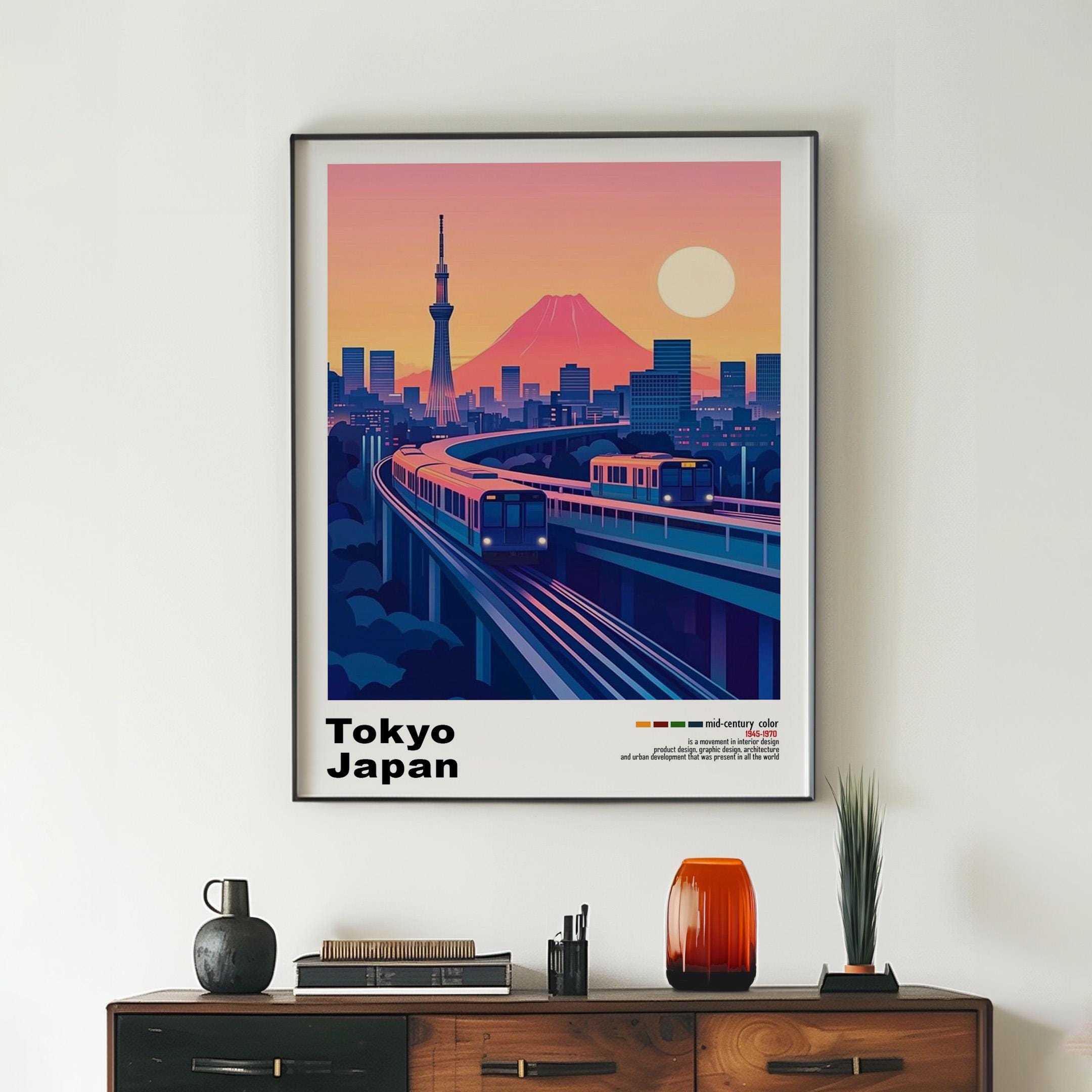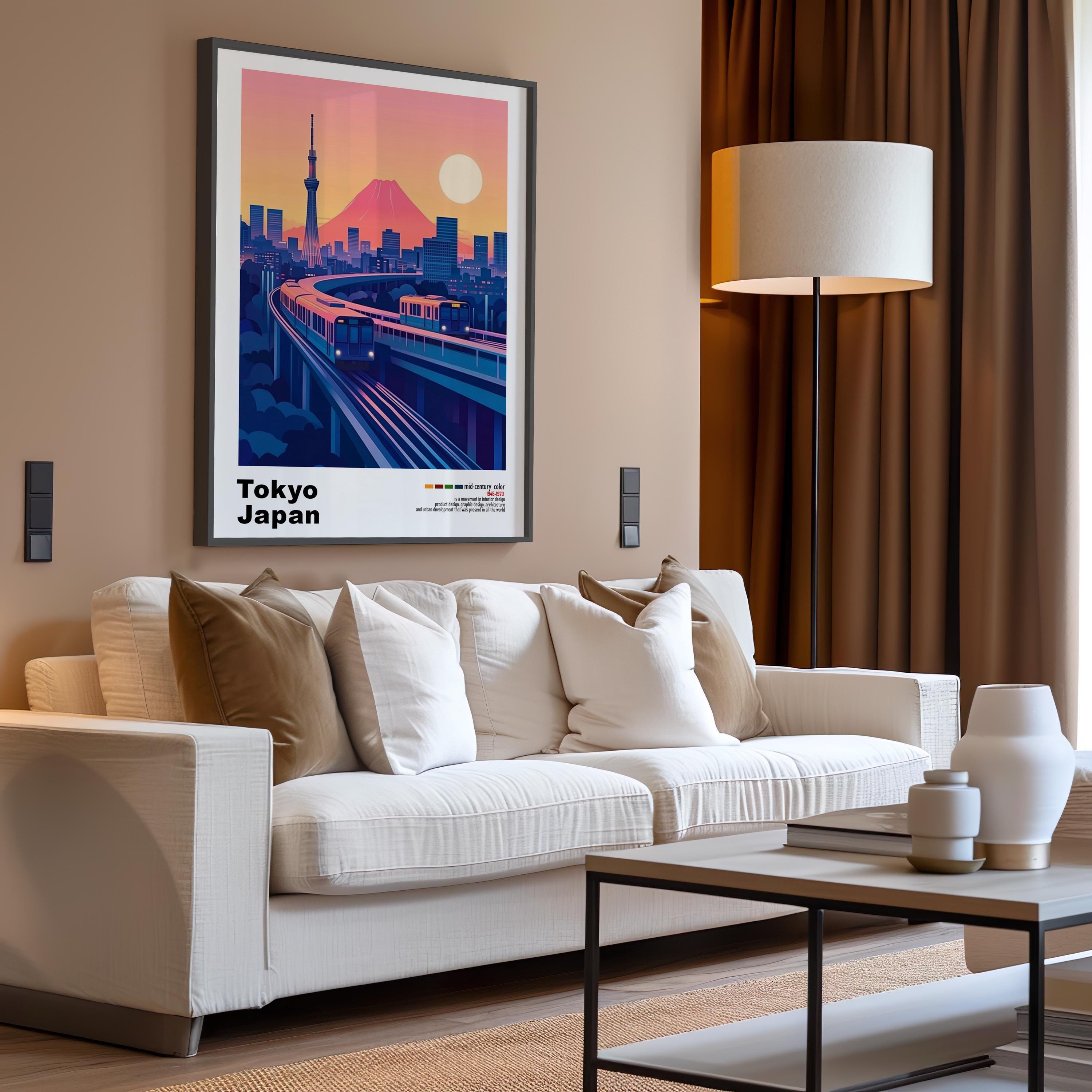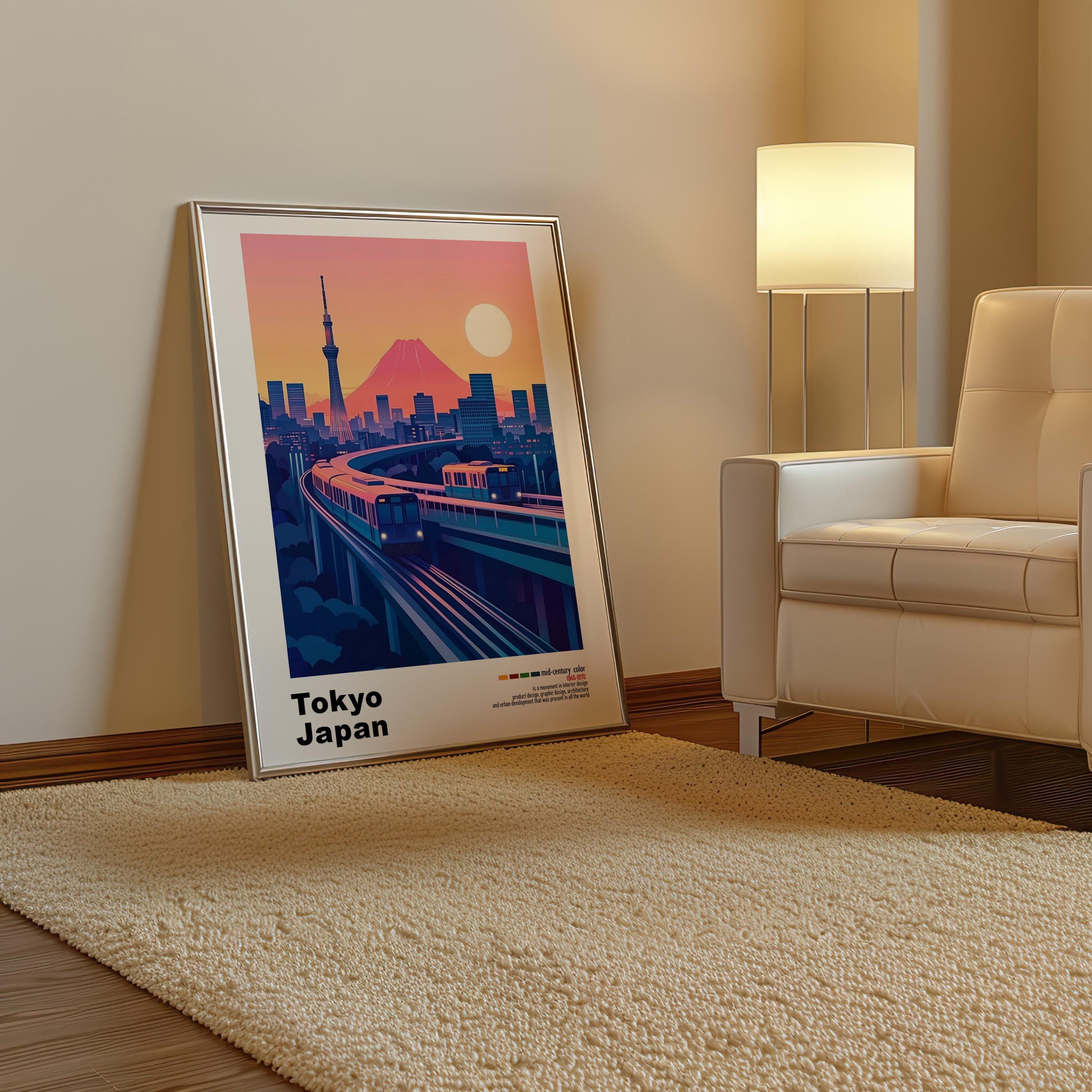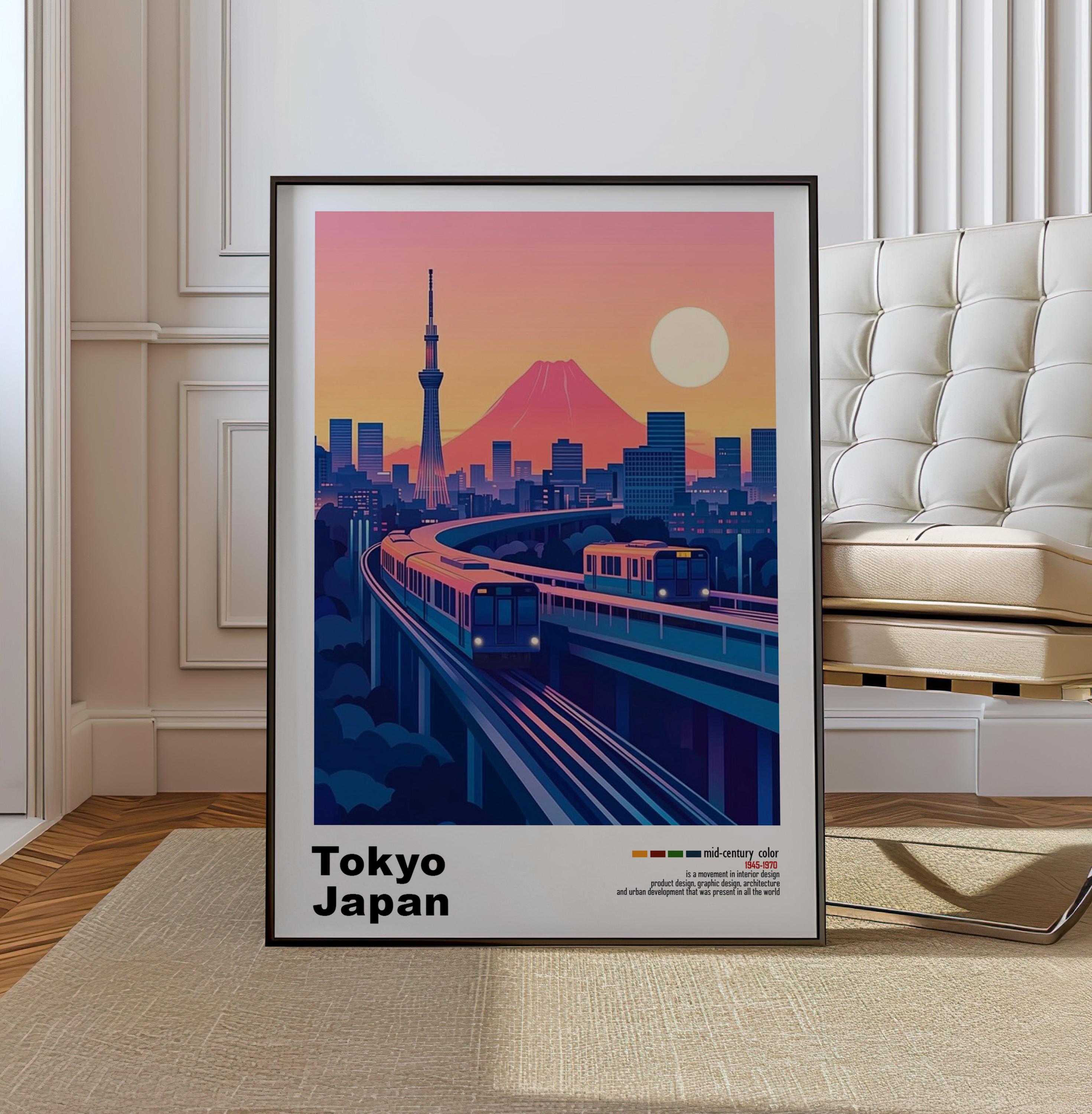 Tokyo, Japan - Mid-Century Modern Architecture Art Print – Retro Minimalist City Poster with Geometric Design - Bold Mid Century Print decor