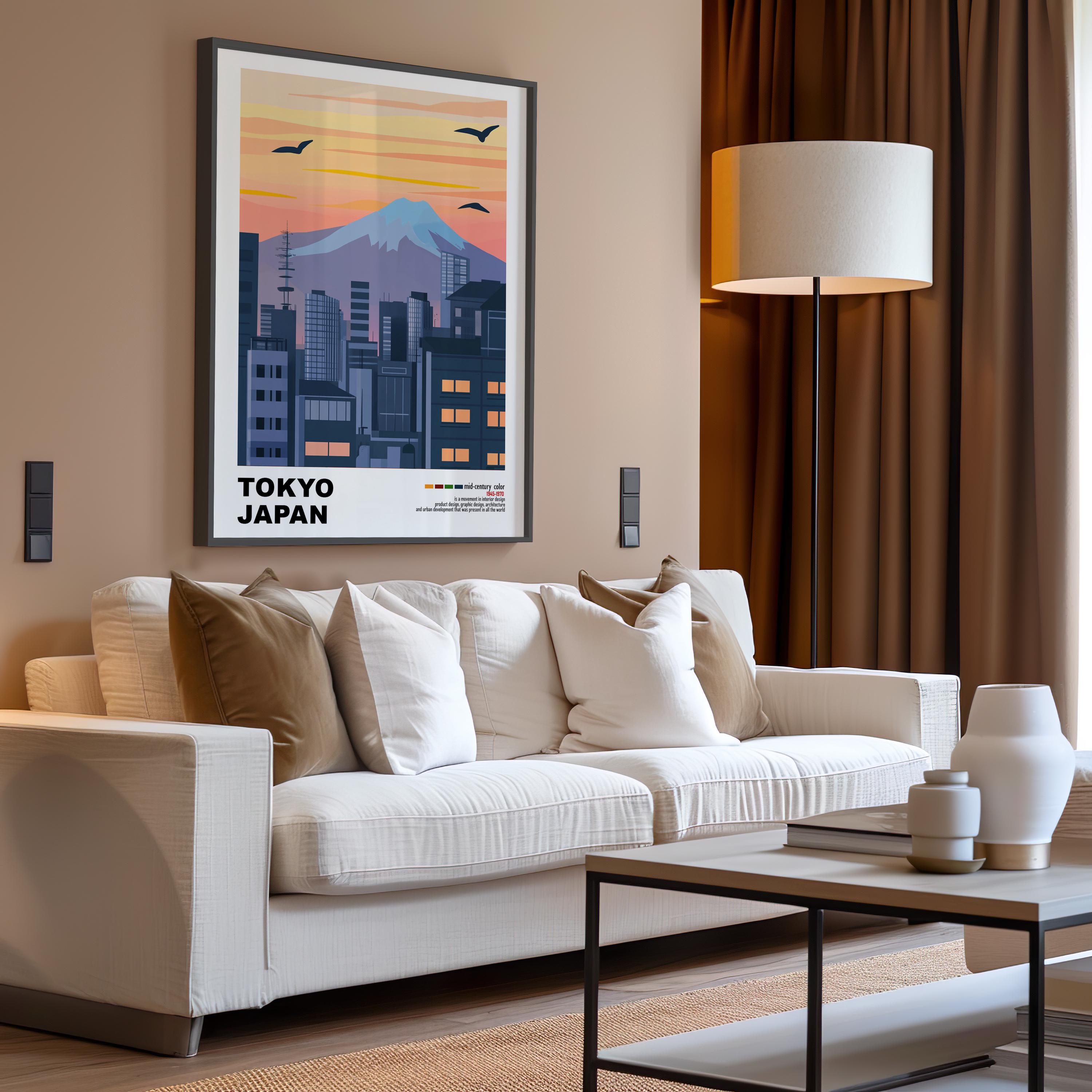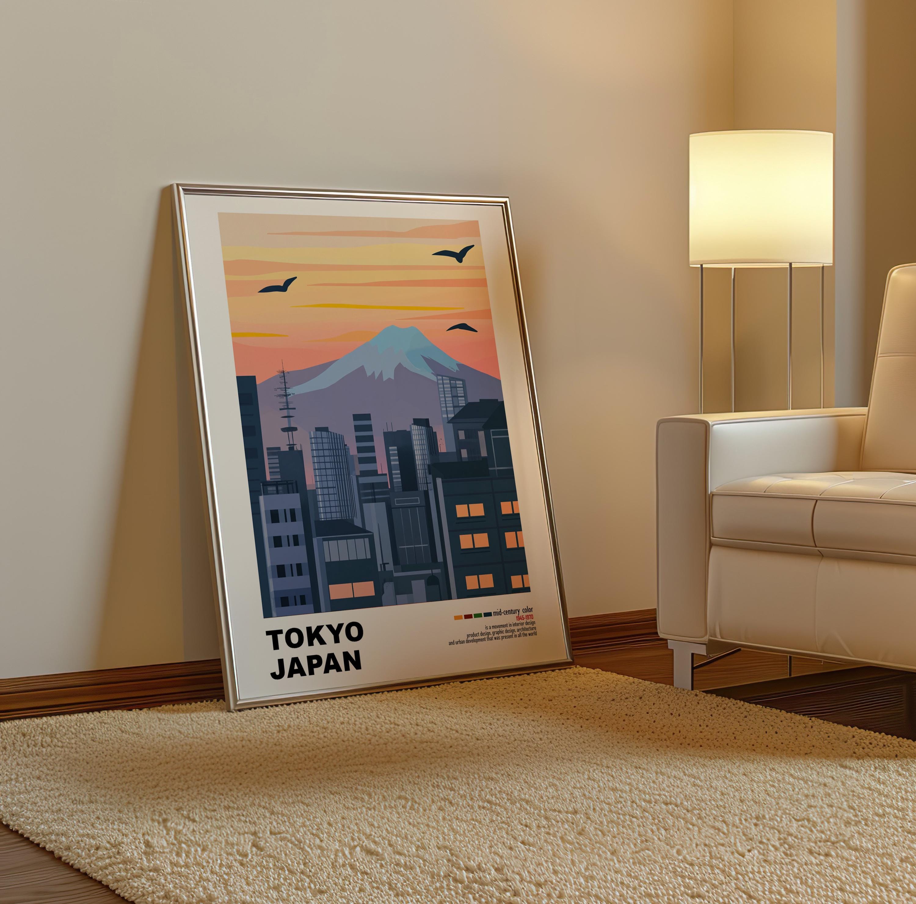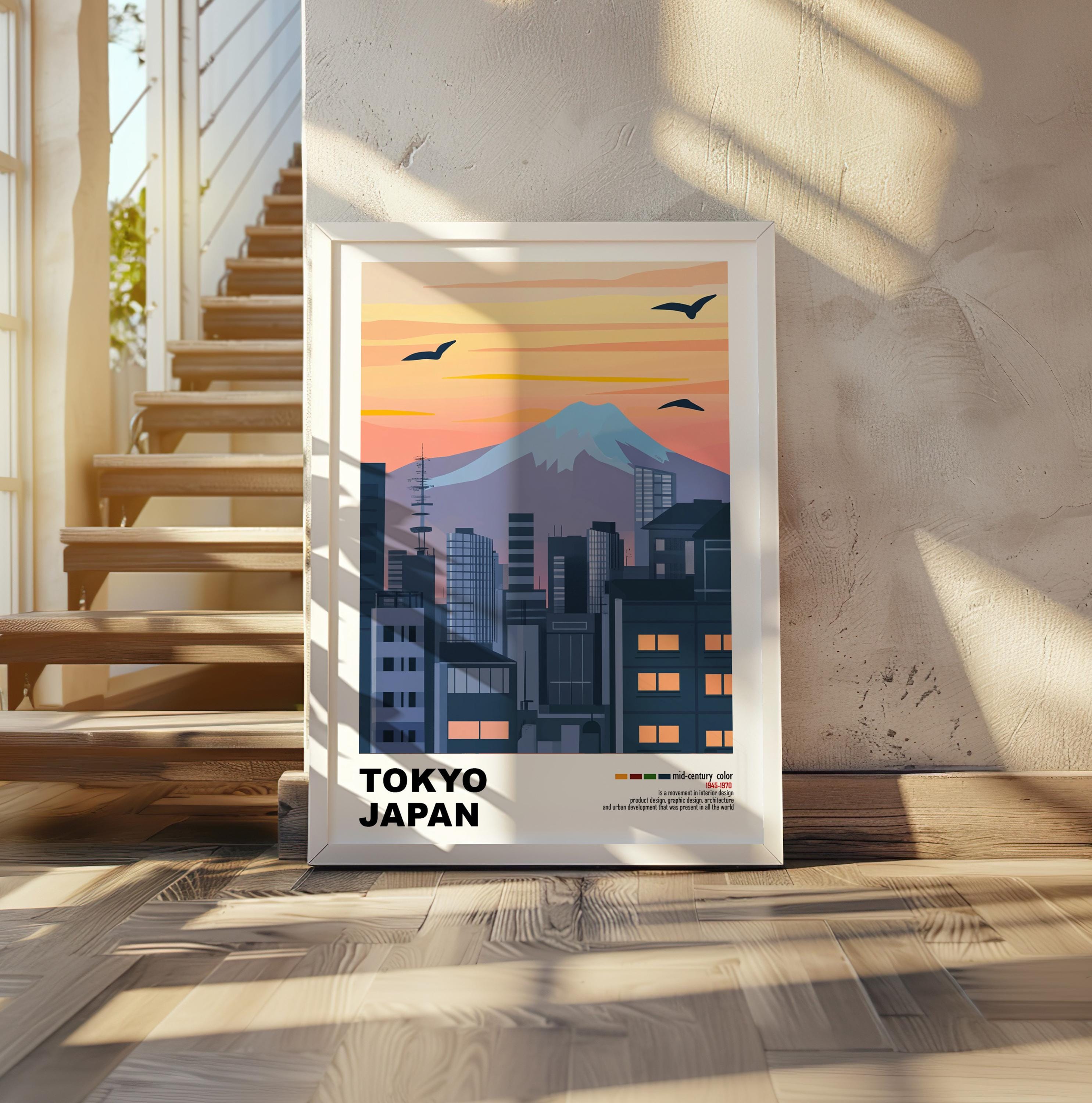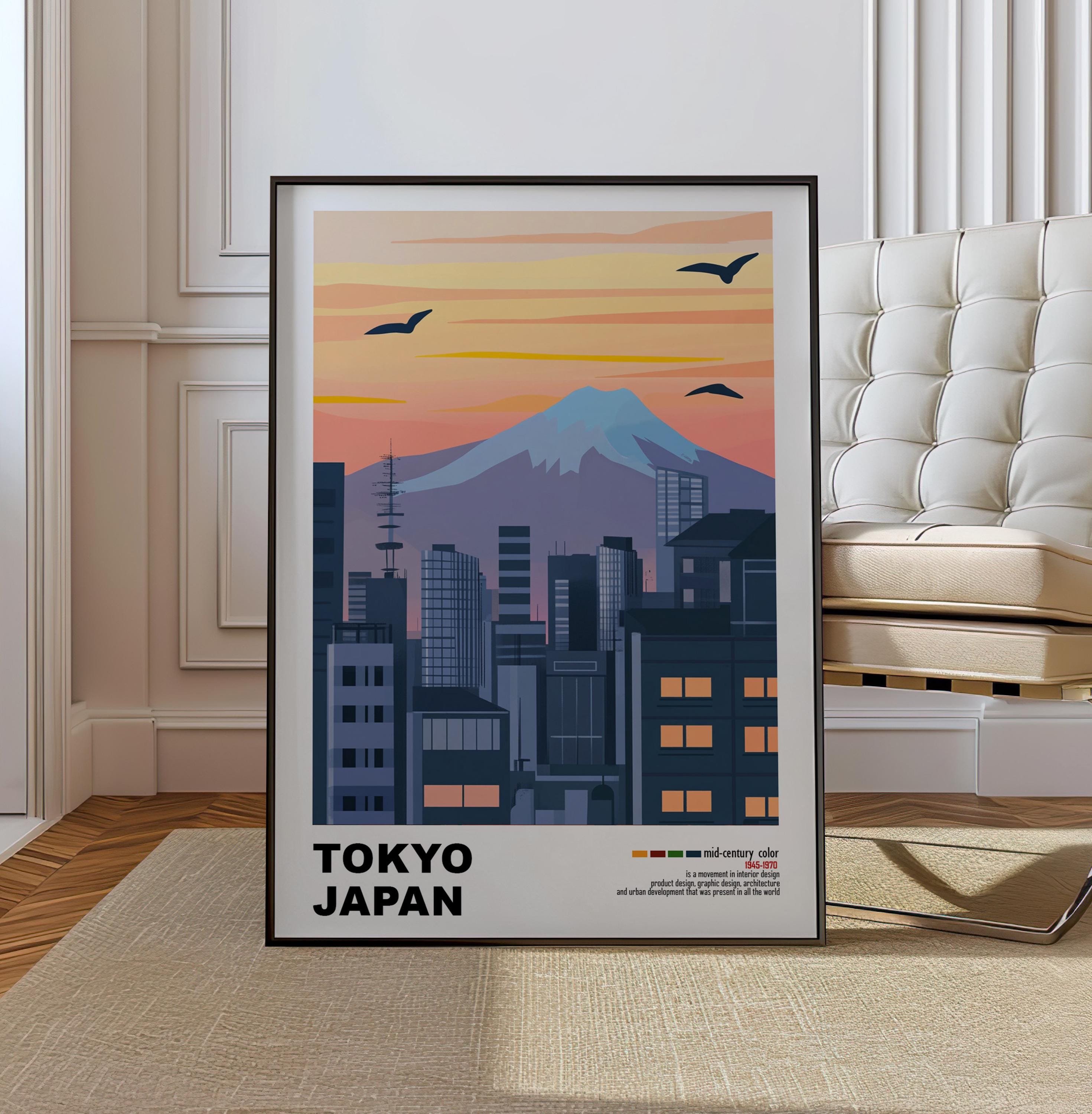 Tokyo, Japan - Mid-Century Modern Architecture Art Print –Retro Minimalist City Poster with Geometric Design - Bold Mid Century Poster Decor