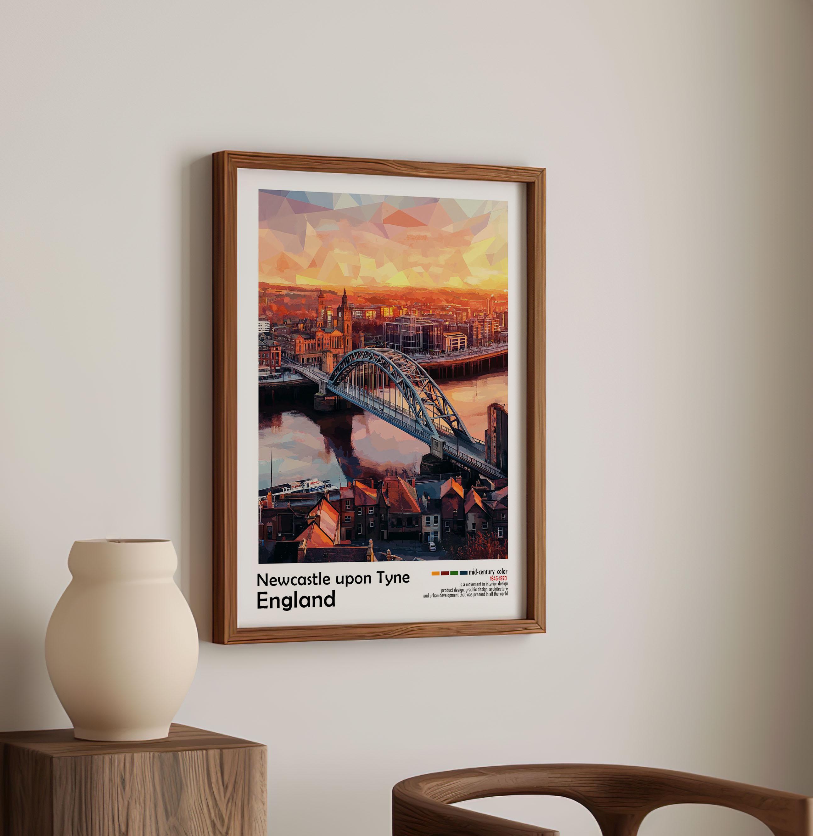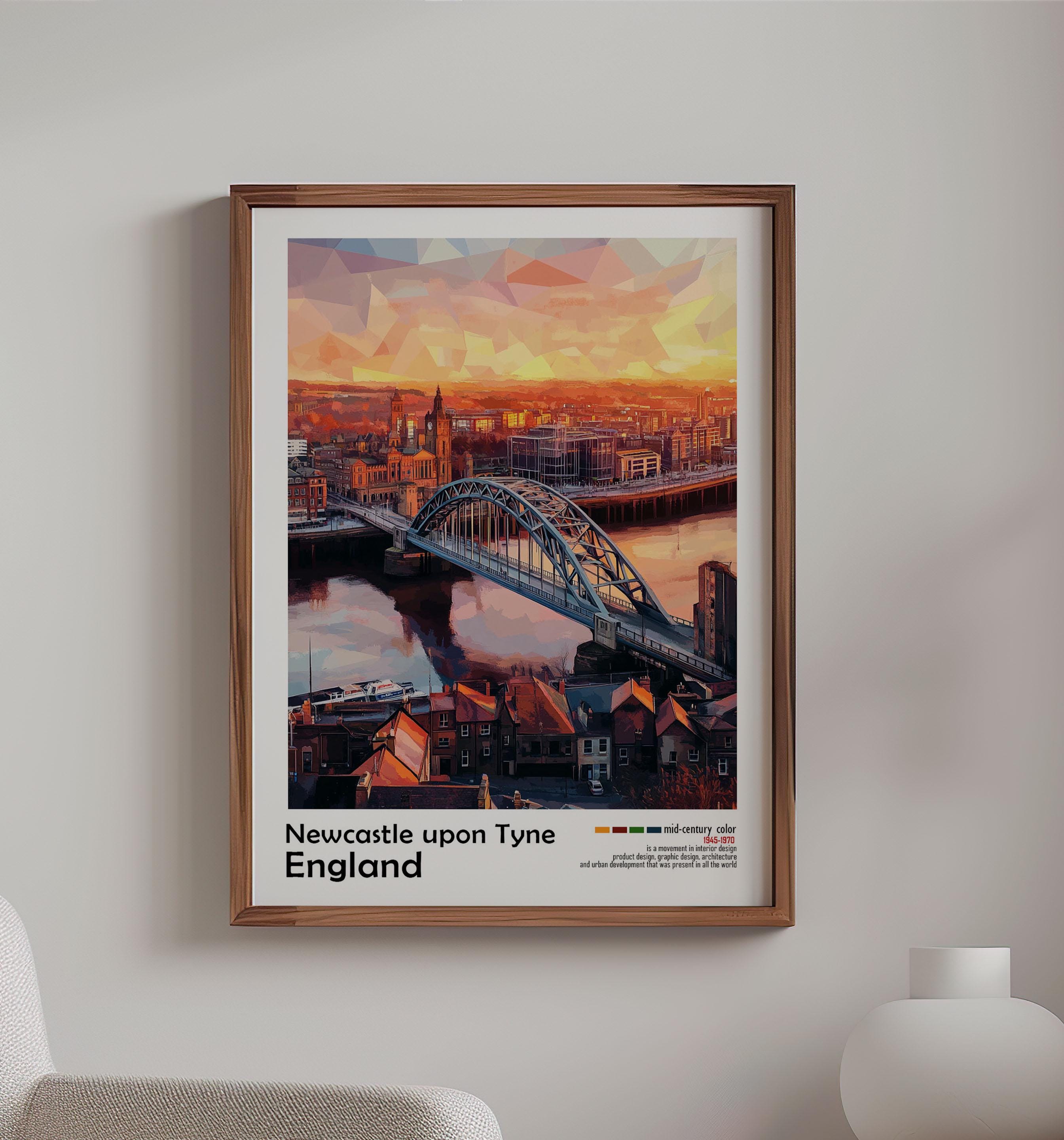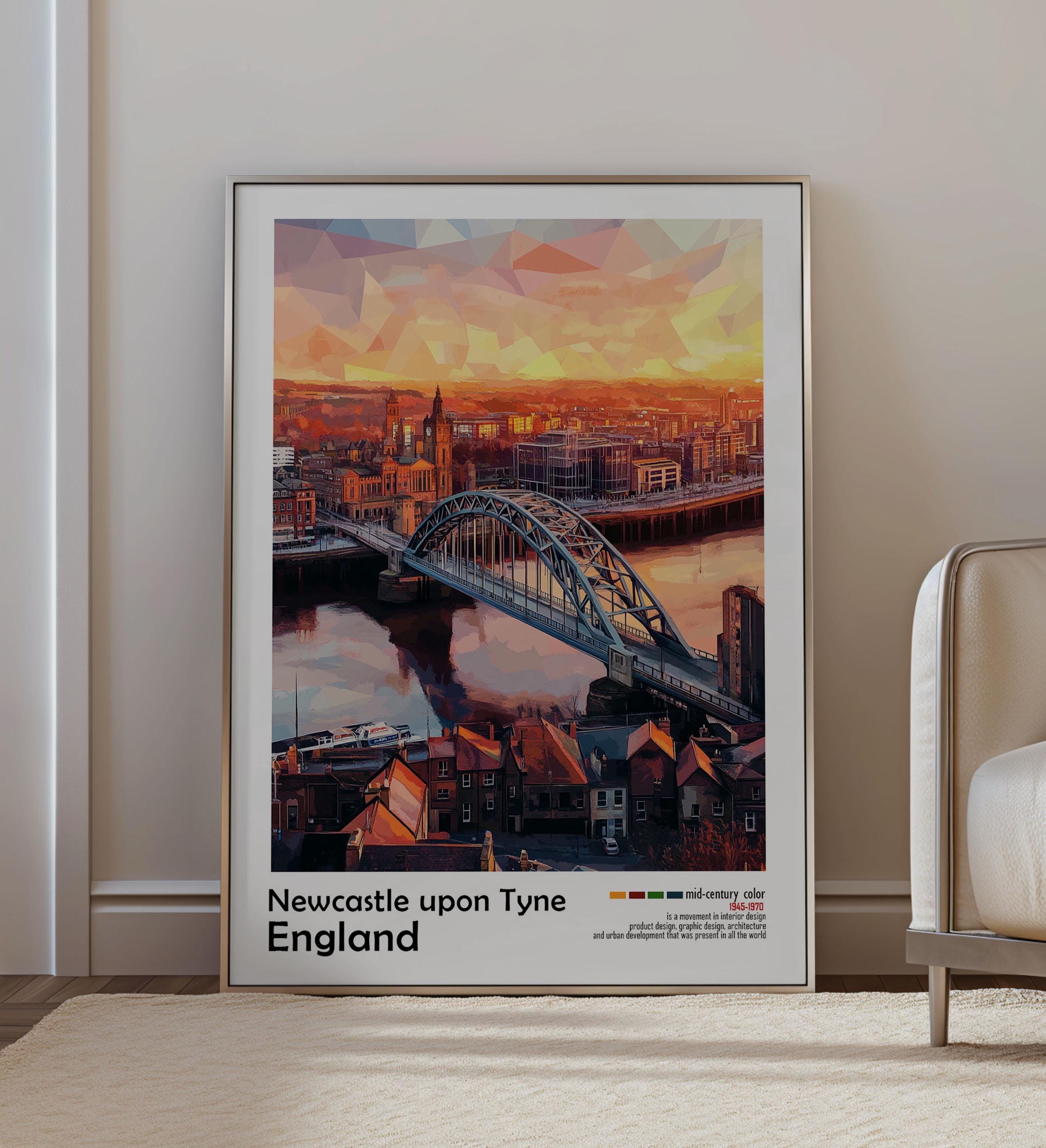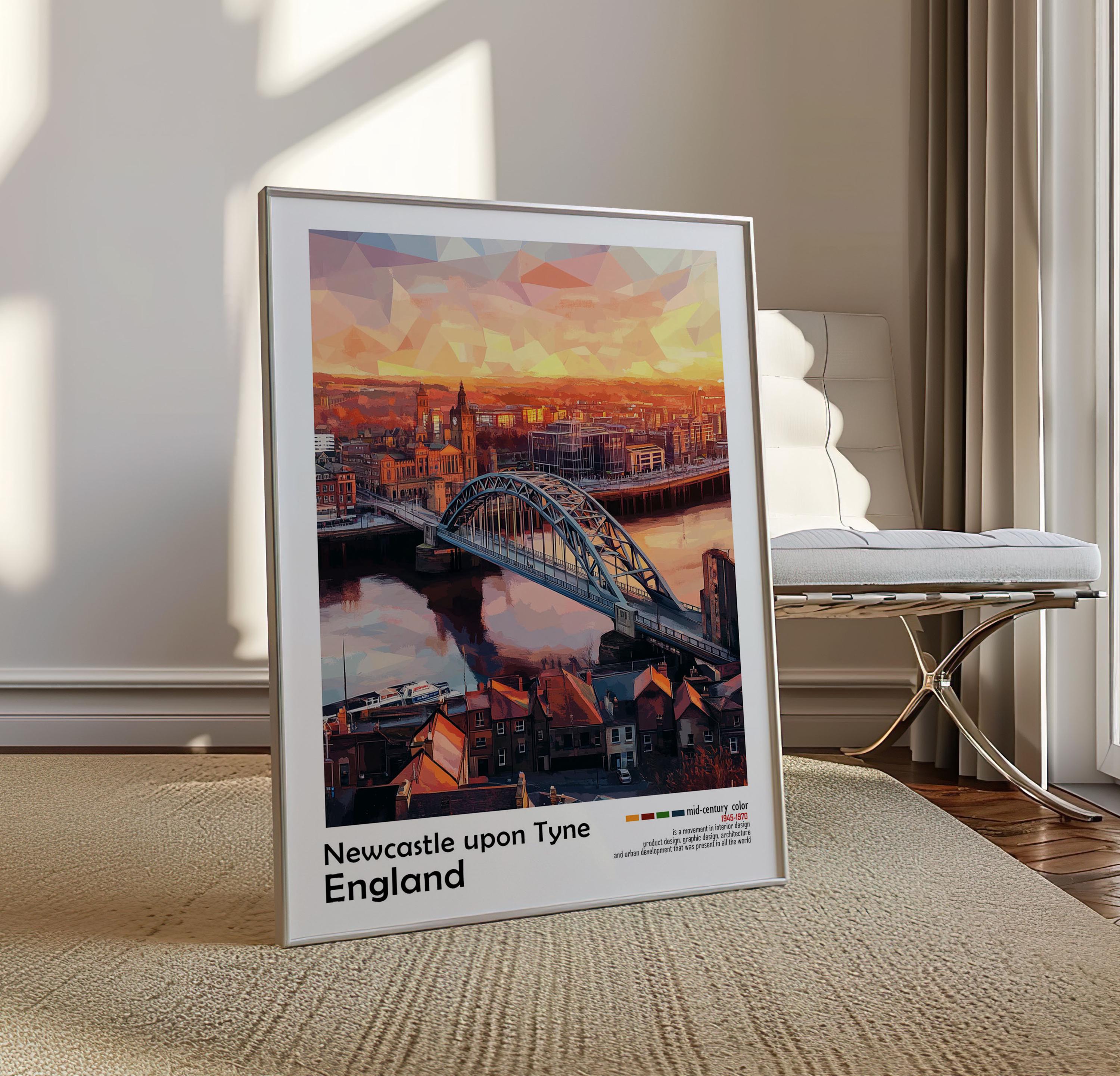 Newcastle upon Tyne, England - Mid-Century Modern Architecture Art Print – City Poster with Geometric Design - Bold Mid Century Poster