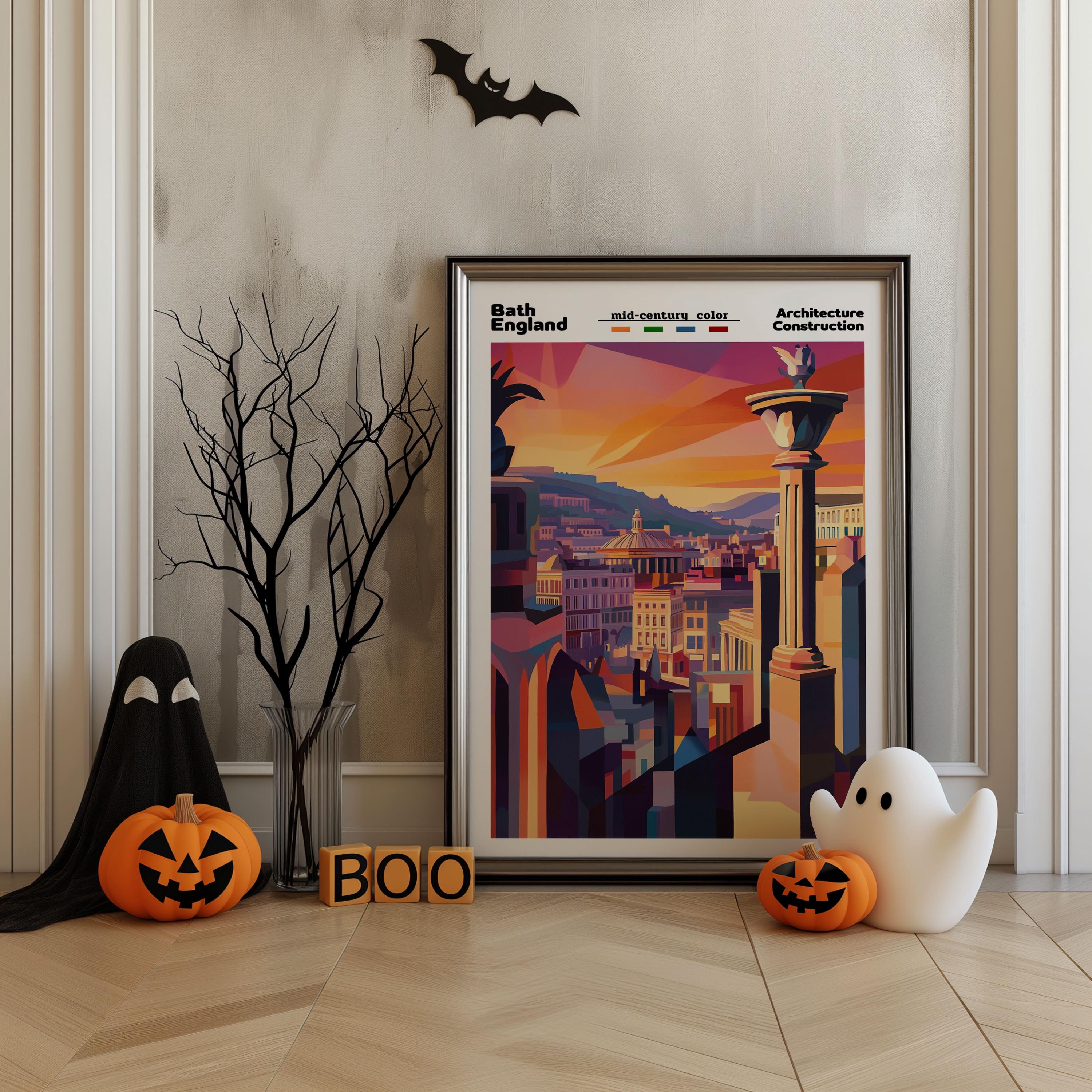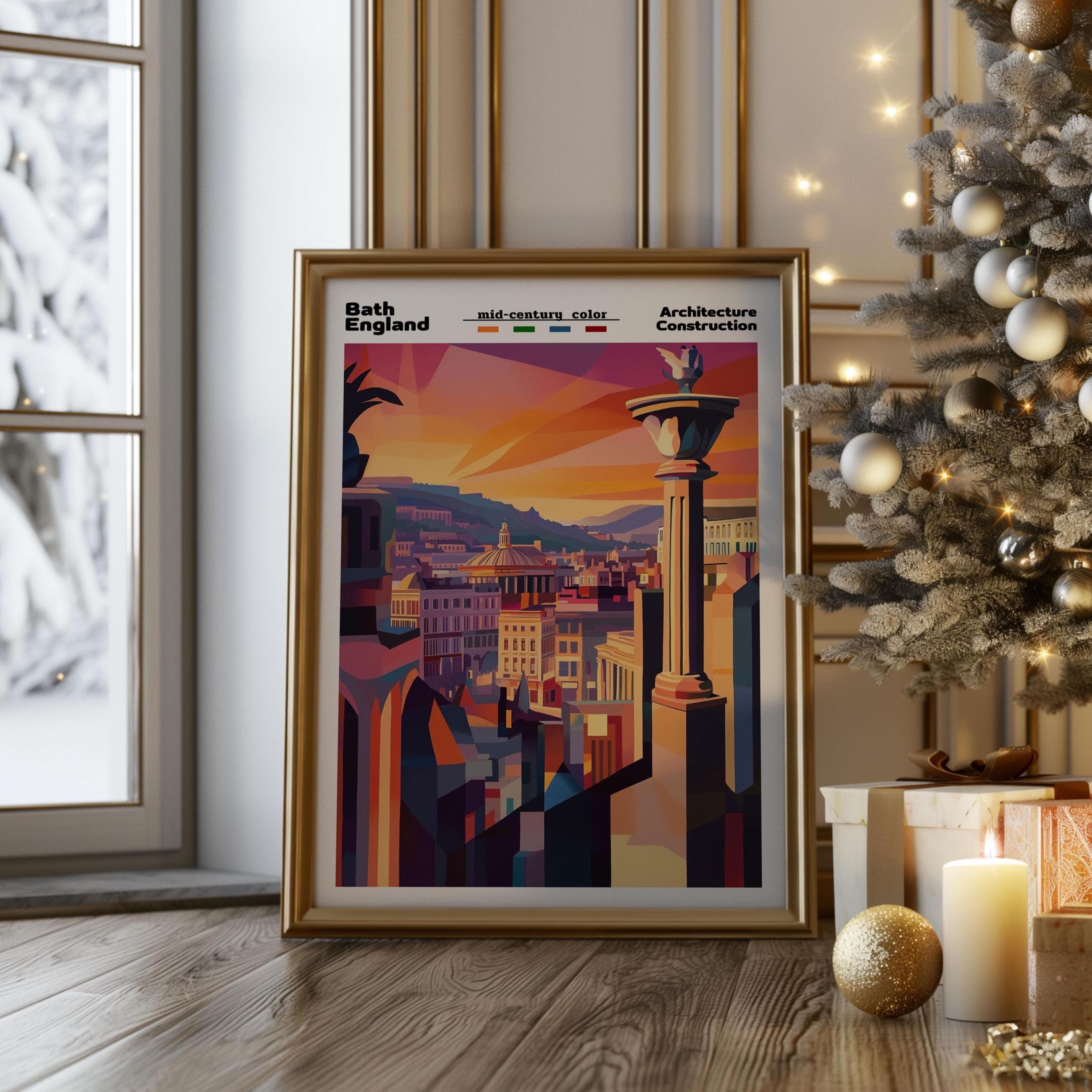 Bath, England - Mid-Century Modern Architecture Art Print –Retro Minimalist City Poster with Geometric Design - Bold Mid Century Poster
