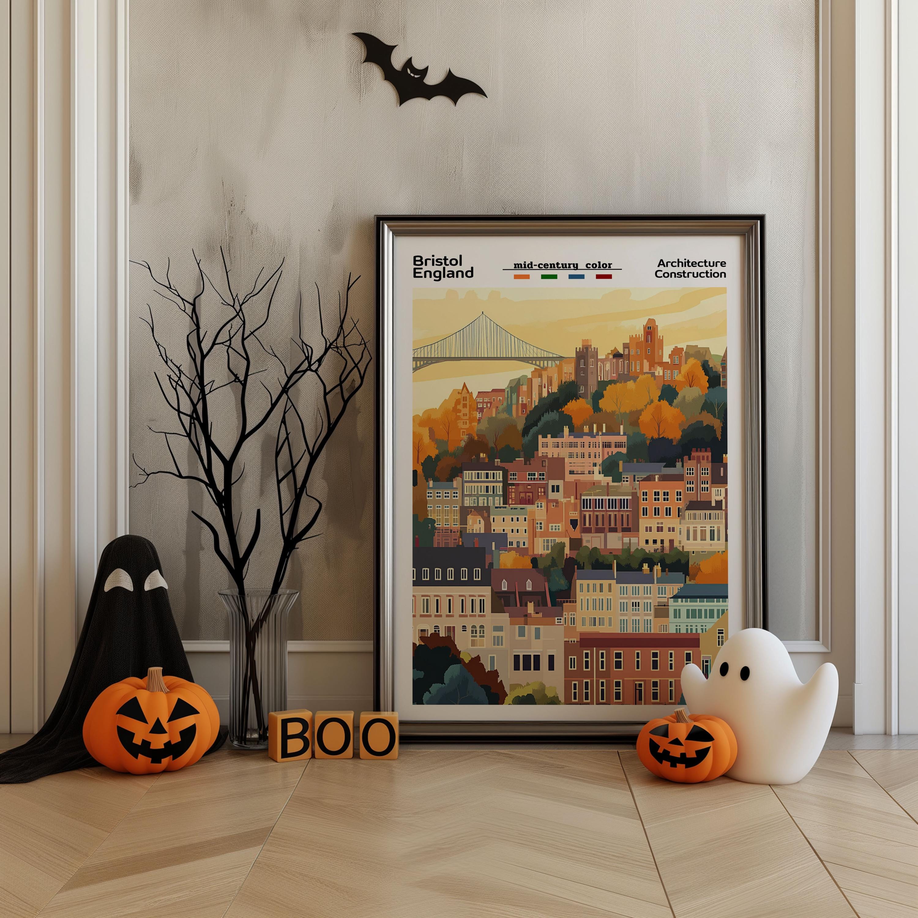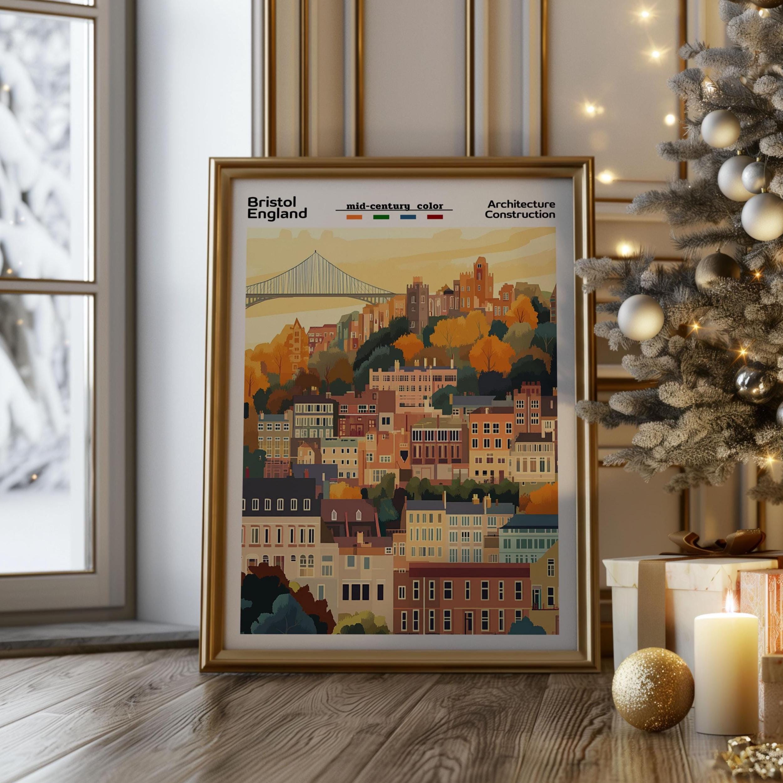 Bristol, England - Mid-Century Modern Architecture Art Print –Retro Minimalist City Poster with Geometric Design - Bold Mid Century Poster