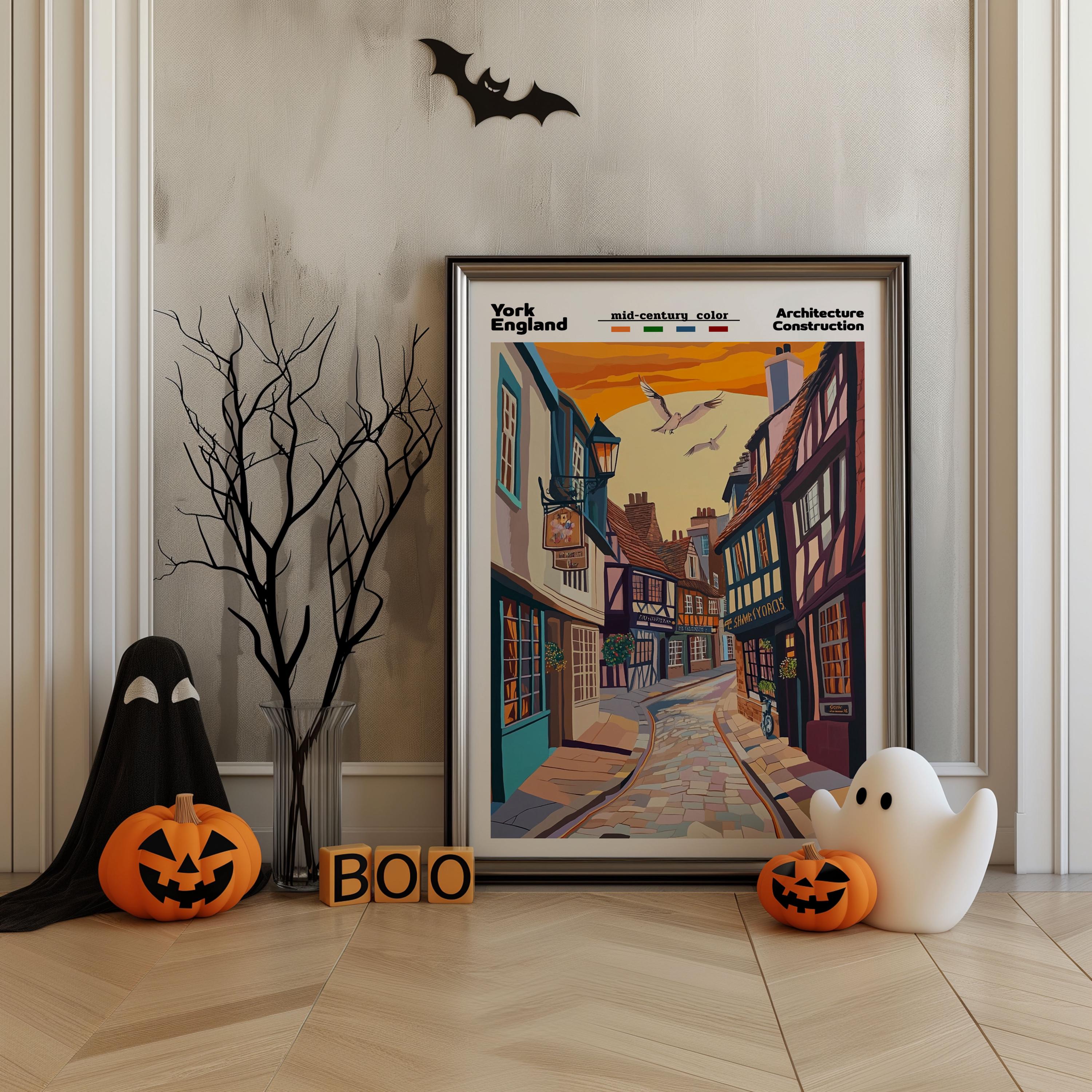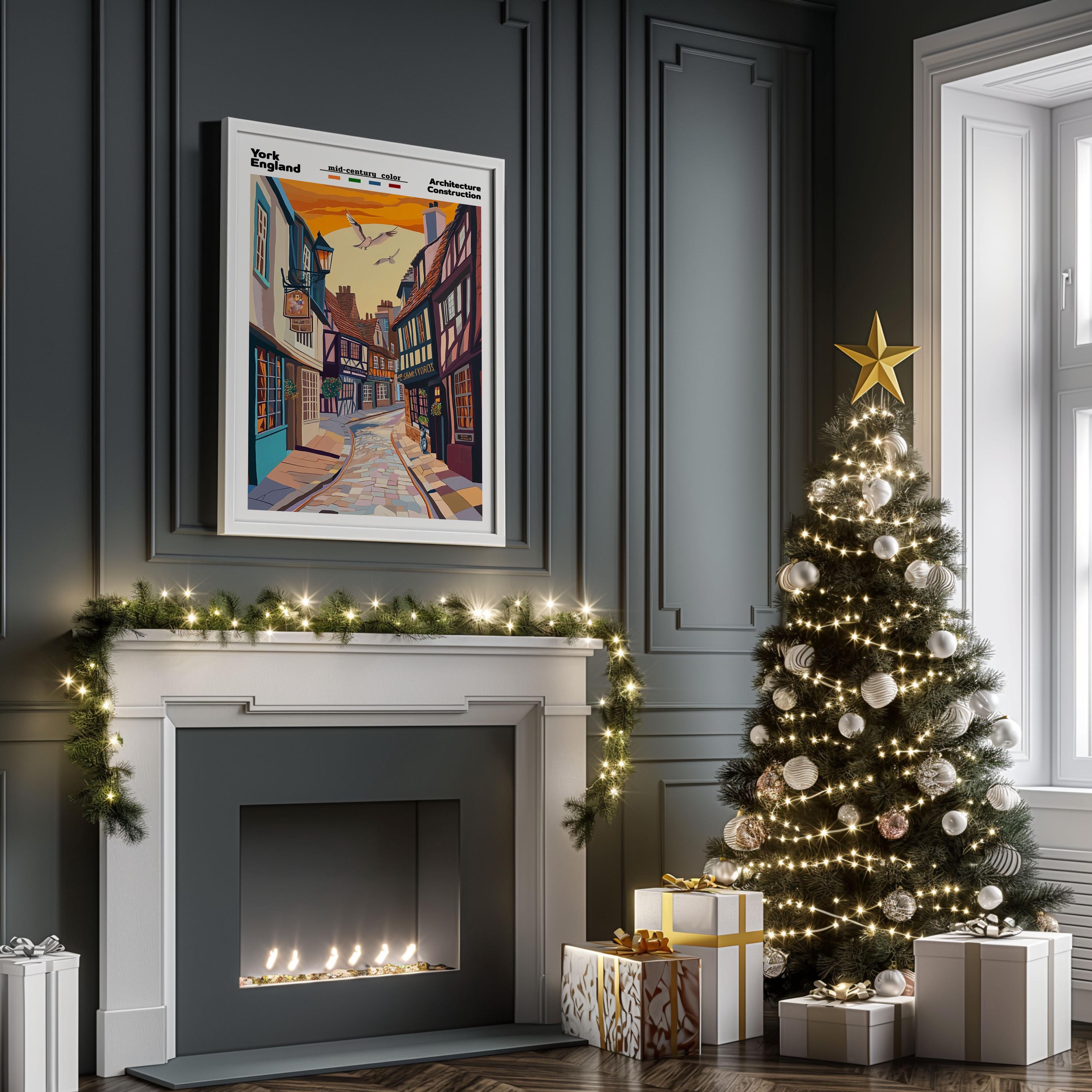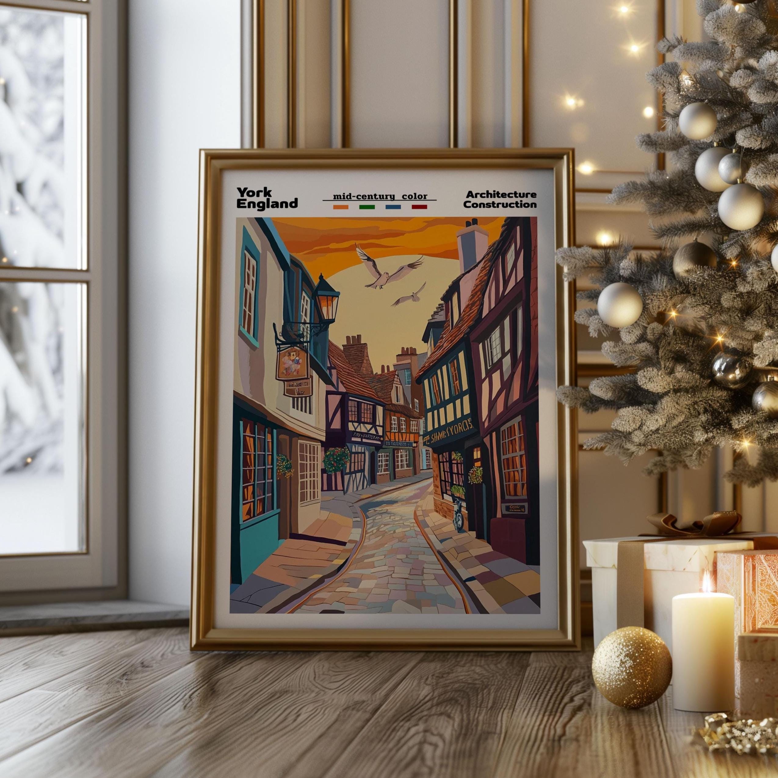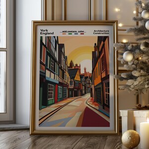 York, England - Mid-Century Modern Architecture Art Print –Retro Minimalist City Poster with Geometric Design - Bold Mid Century Poster